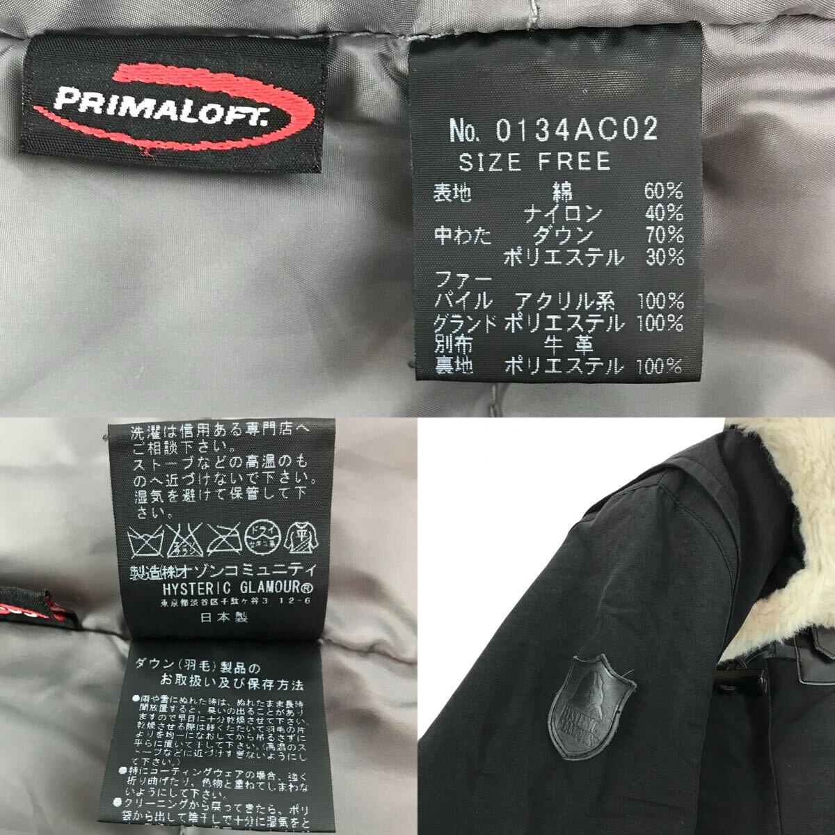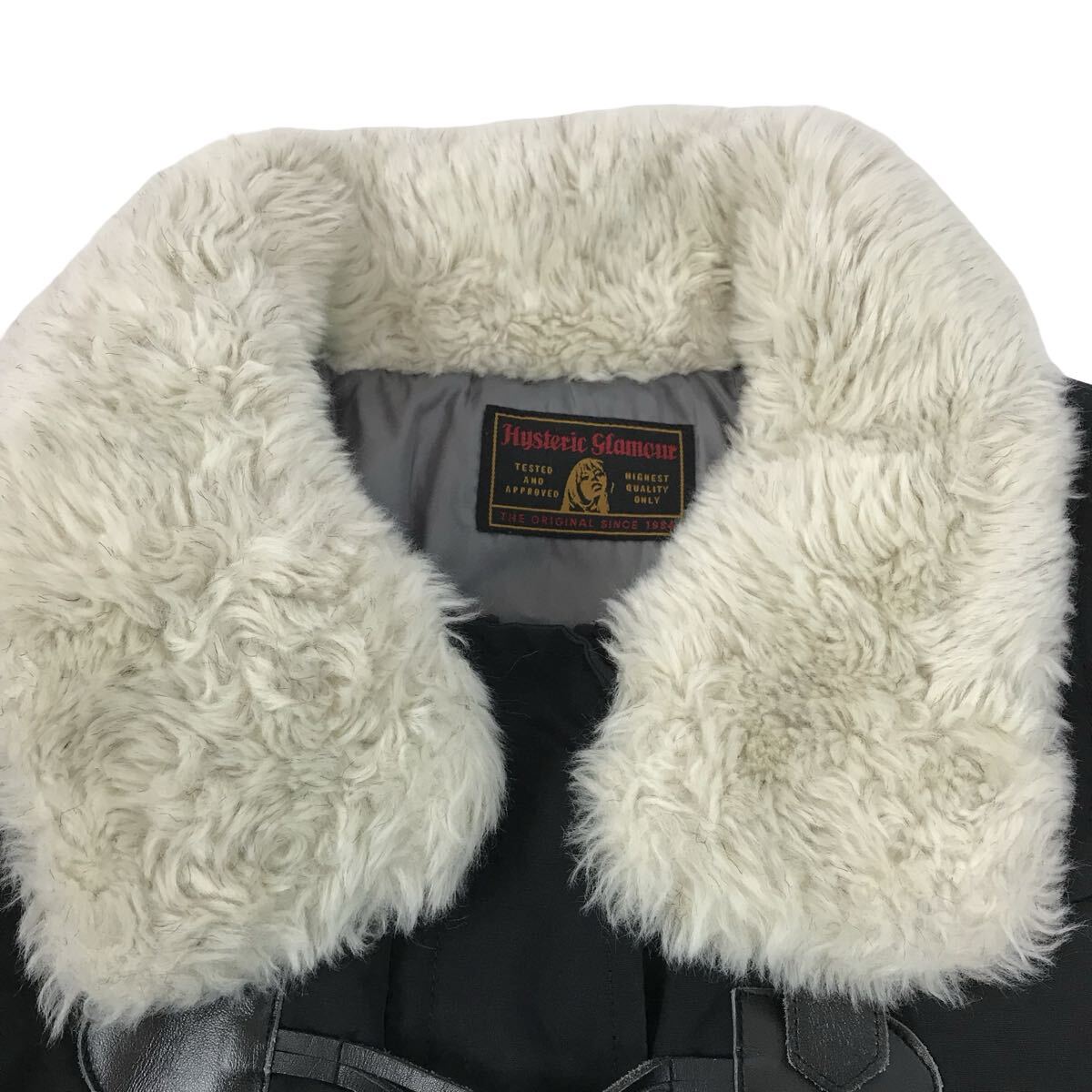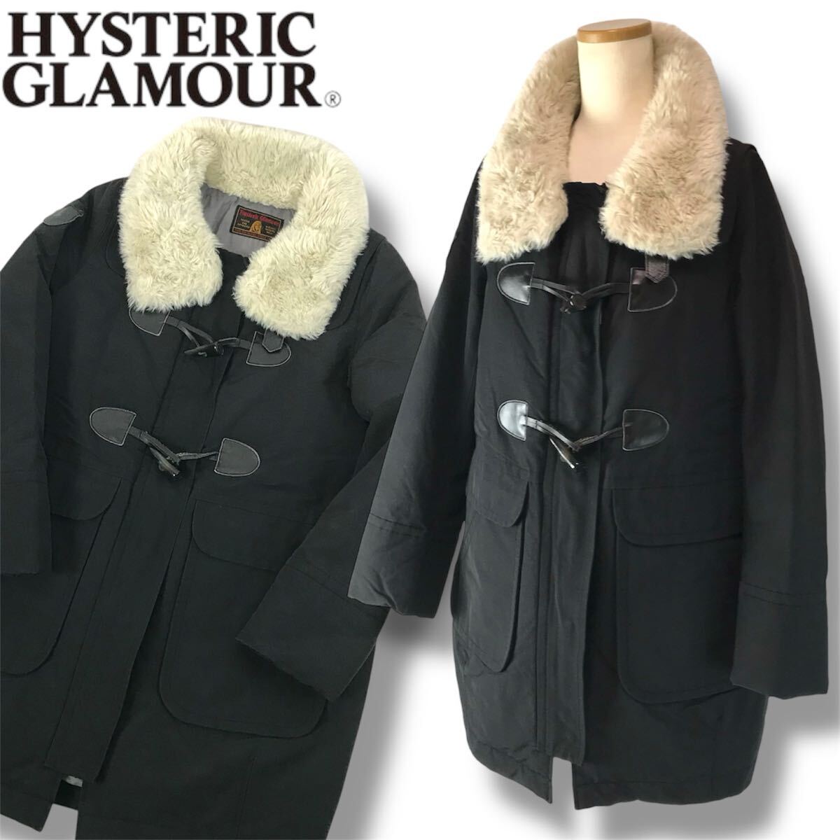 f67 HYSTERIC GLAMOUR ヒステリックグラマー ダウン ダッフルコート ダウンジャケット 中綿 日本製 フリー ブラック エコファー 正規品