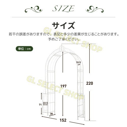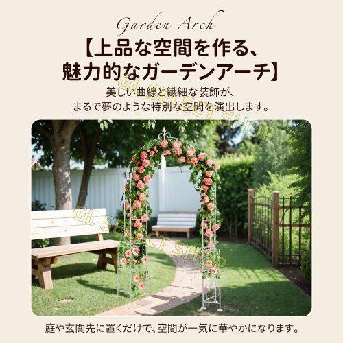 • 【上品な空間を作る、魅力的なガーデンアーチ】美しい曲線と繊細な装飾が、まるで夢のような特別な空間を演出します。庭や玄関先に置くだけで、空間が一気に華やかになります。ガーデンウェディングの入り口に。フェアリーライトを飾ってロマンチックに。ガーデンの飾りつけに。記念写真の背景としても大活躍。