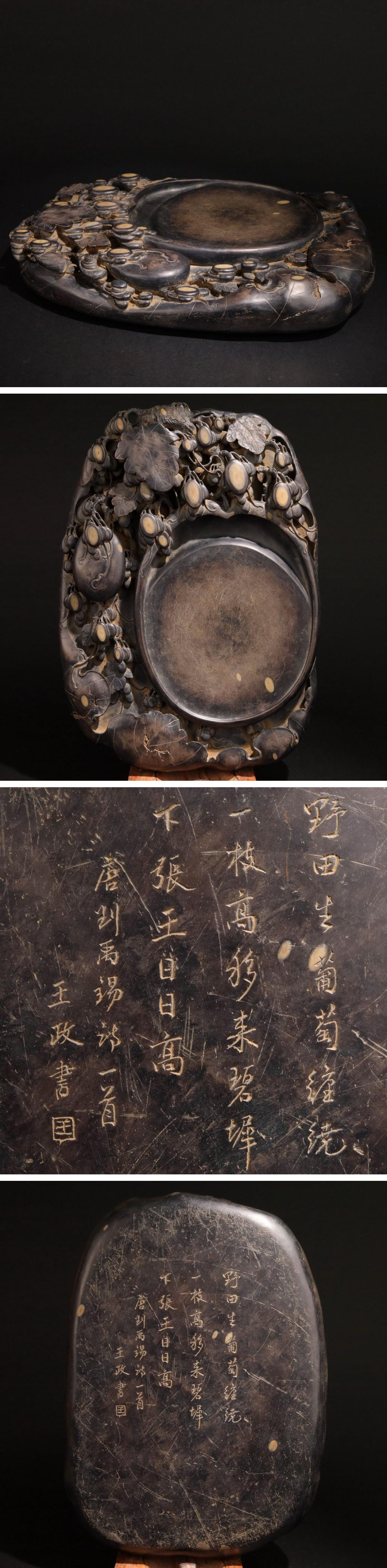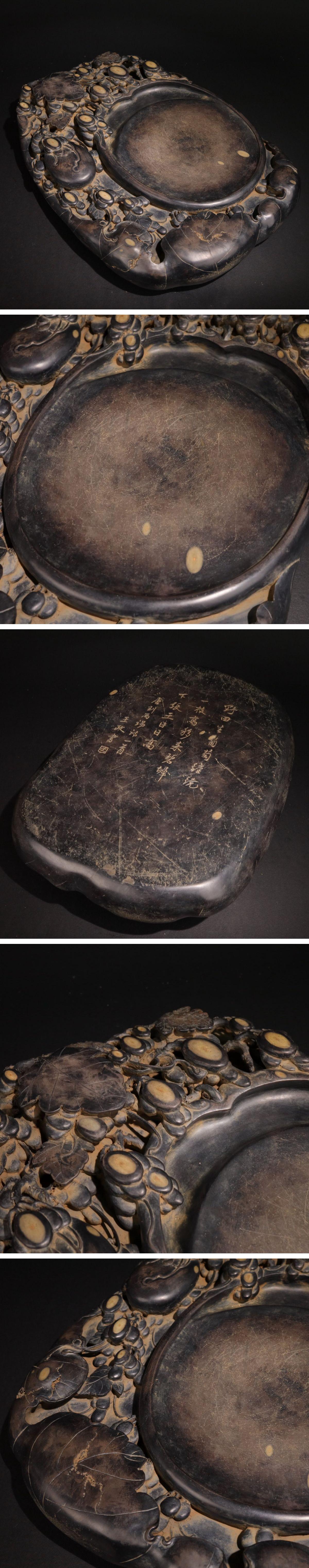 【清】関西某オークション購入 中国・清時代 端渓 漢詩紋巨大硯12.4㎏ 極細工 古置物 古擺件 中国古美術7L10-IW16