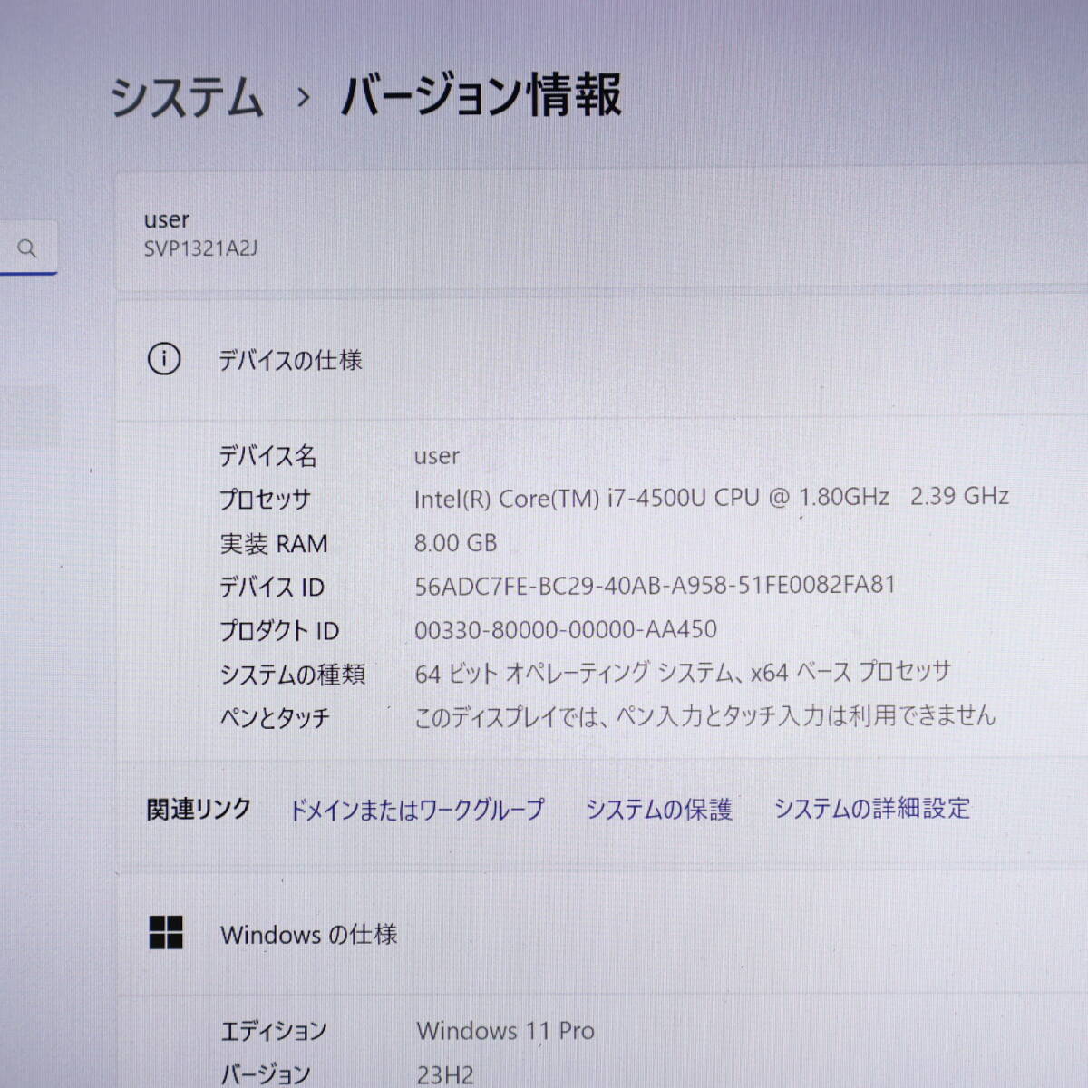 ★現状品 最上級4世代i7!SSD128GB メモリ8GB★SVP1321A2J Core i7-4500U Webカメラ Win11 MS Office 中古品 ノートパソコン★P92504