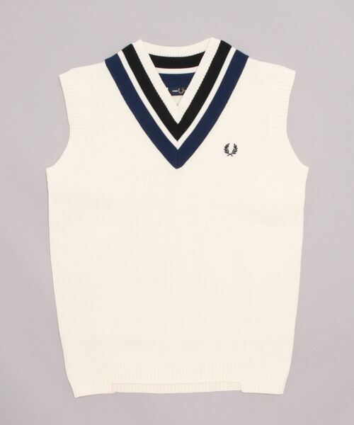「FRED PERRY」 ニットベスト L ホワイト メンズ