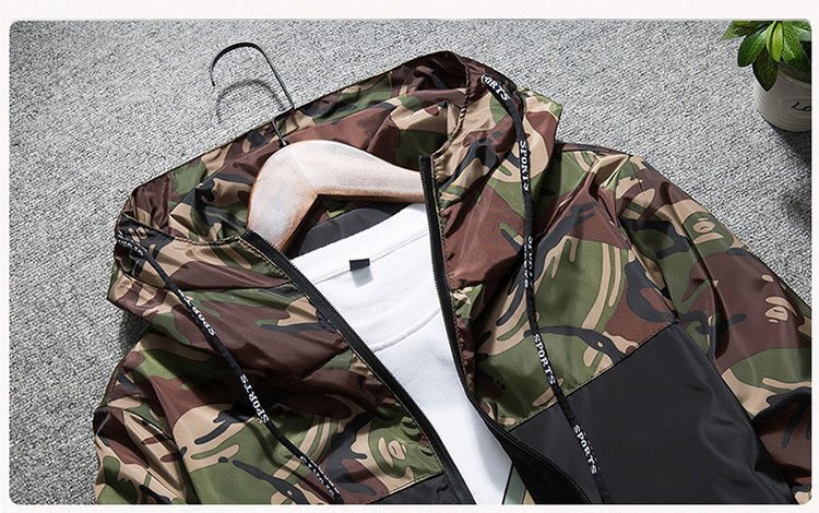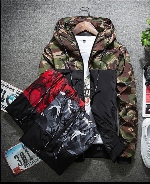 ☆ 【174】 迷彩 ウィンドブレーカー フード付き グレー XL メンズ ナイロン カモフラ 柄 アウトドア 防風 軽量 ジャケット