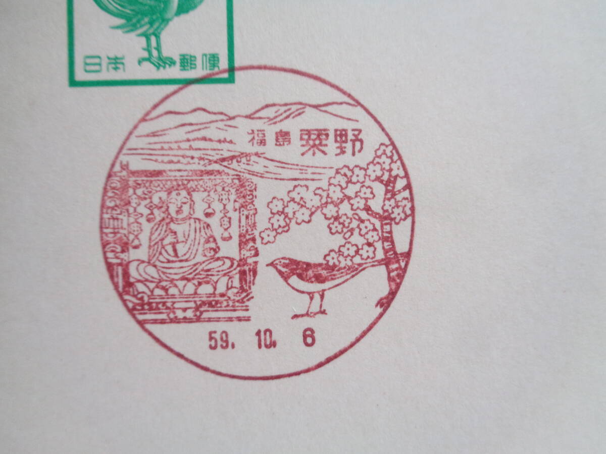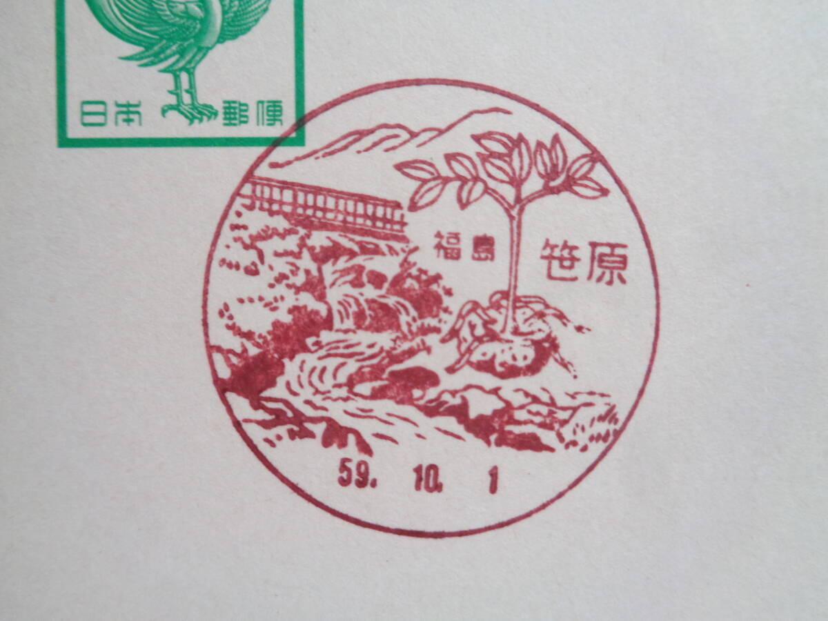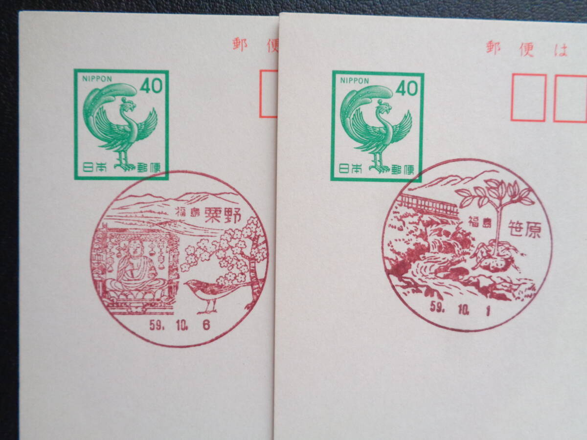 鳳凰はがき    初日印/風景印    福島県2枚    笹原/S59.10.1    粟野/S59.10.6