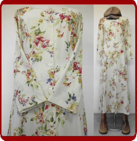 古着♪レトロ・Vintage花柄ロングシャツワンピ♪70s60s70年代60年代80年代ヴィンテージ日本製9号クラシカル昭和モダン即決まとめ