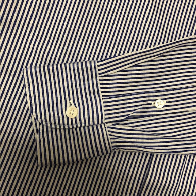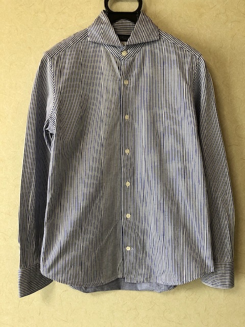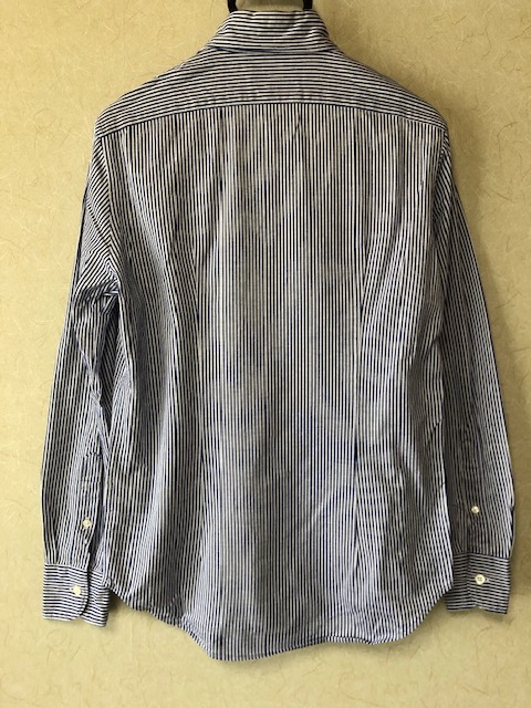 BARNEYS NEW YORK の 長袖ストライプシャツです。イタリアが誇る世界3大シャツ生地ブランドのALBINI社製の生地を使用した長袖シャツになります。サイズ :S着丈(約)71cm肩幅(約)41cm身幅(約)48cm袖丈(約)60cm多少の着用感ございますが着用回数は少なくまだまだ問題なく使用いただけるお品です。着用回数の少ないアイテム、長く使用していただけるアイテムを中心に出品しております。他にも人気ブランドのジャケット・シャツ・パンツなど出品しておりますので是非ご覧ください。【注意事項】取引終了まで速やかにお取引できる方のみ入札お願いします。落札後はノークレームノーリターンでお願いします。よく確認して出品する努力をしておりますが素人検品のため見落とし等あるかもしれません。素人出品にご理解いただける方でお願いします。USEDにつき画像にて判断お願いします。