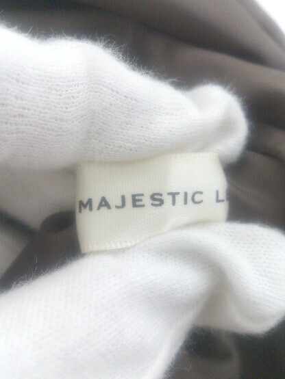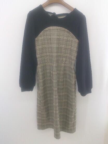 ◇ MAJESTIC LEGON ニット 切替 柄 長袖 膝丈 ワンピース サイズM ブラック ブラウン系 マルチ レディース P