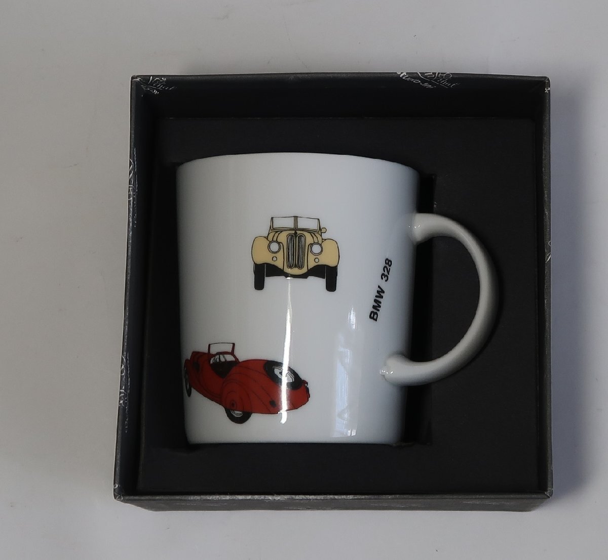 出品は画像の物のみです。箱に入った状態で手に入れております。箱は擦れや汚れあります。箱の中の仕切り板に破れあります。マグカップ自体も多少の汚れはあります。使用できないようなダメージはないです。実際に使用されていたのかわかりませんので中古としております。高さ8.9cmくらい、上部の直径は7.7cmくらいです。あとは画像をご覧ください。