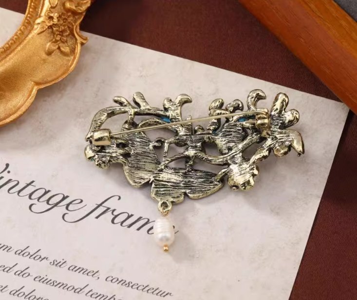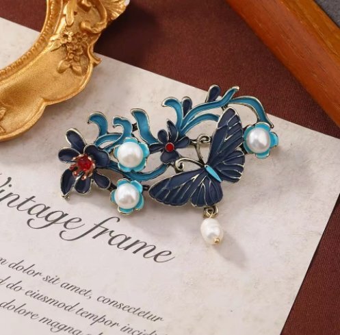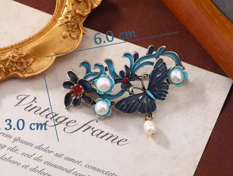淡水パールブローチ焼ブルーブローチピン女性プレゼント