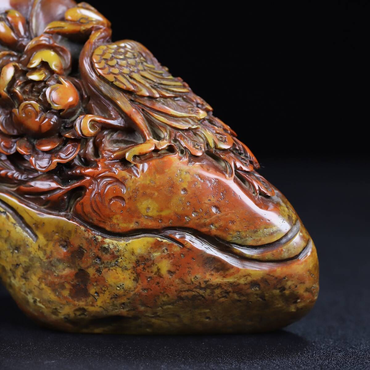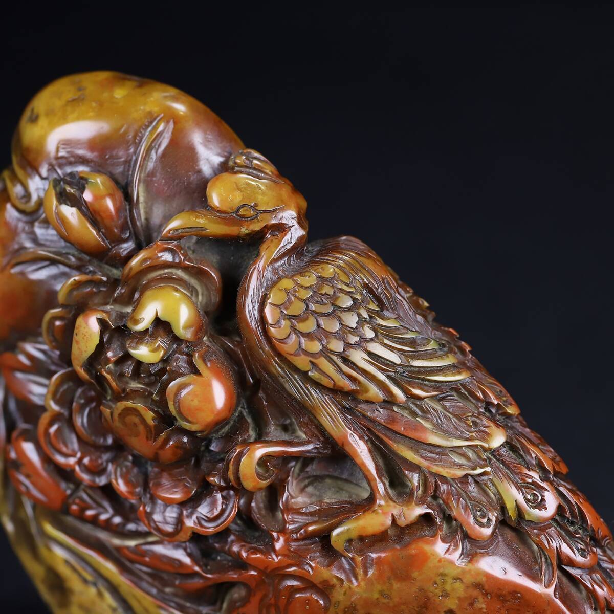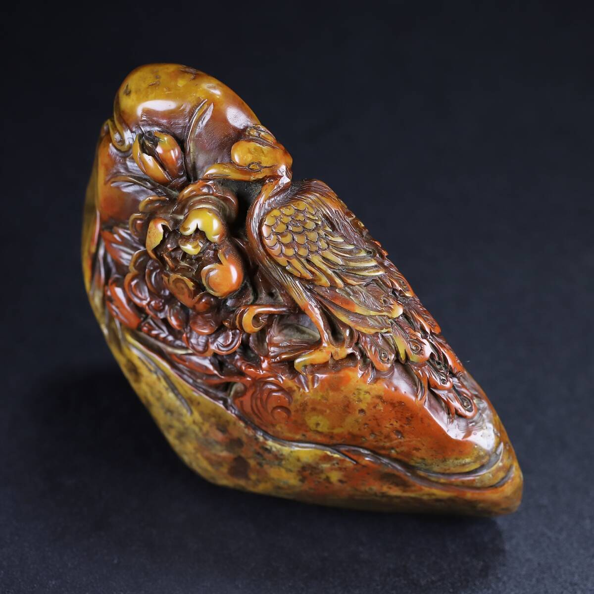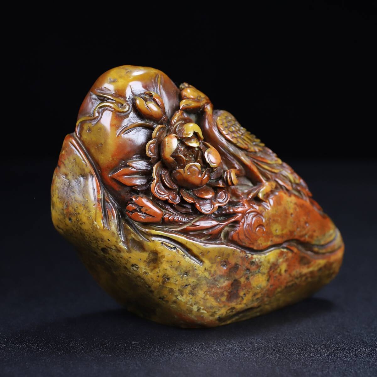 館蔵 寿山石彫 孔雀戲牡丹 印鑑 印章 天然石 手彫 篆刻 古印材 極細工 中国古玩 古美味 骨董品 中国古美術 古美味 蔵出