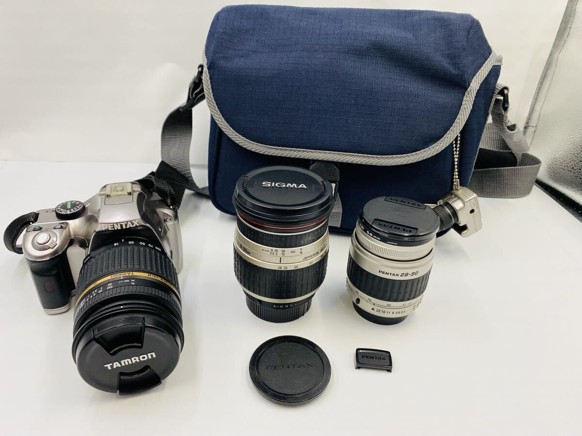 ◆ PENTAX ペンタックス K-x デジタル一眼レフカメラ TAMARON AF 18-250mm 1:3.5-6.3 レンズなど レンズ3点付属 単3電池駆動 通電確認済みになります。