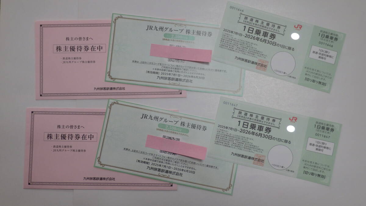 JR九州 鉄道株主優待券一日乗車券 2名分 2枚 ー 有効期限: 2026/6/30 ★送料無料★