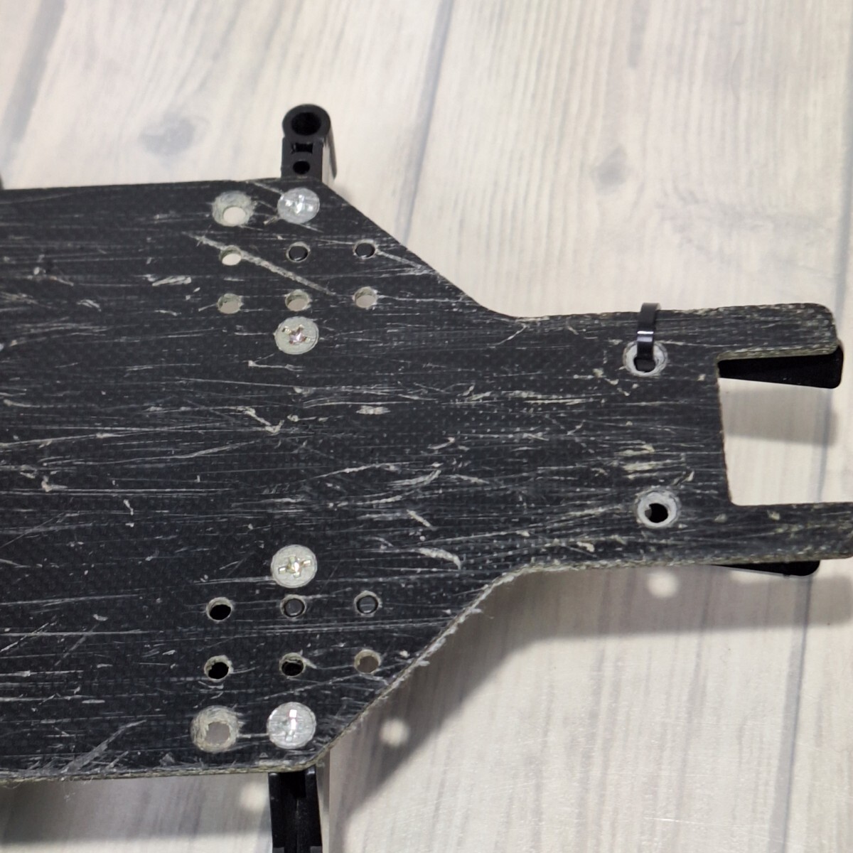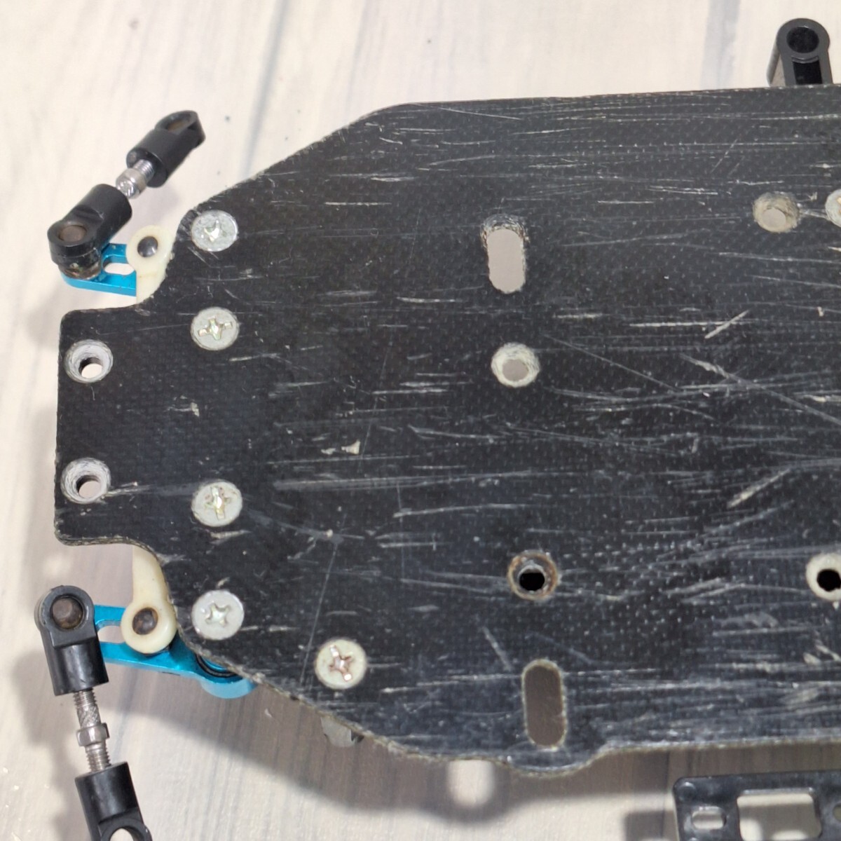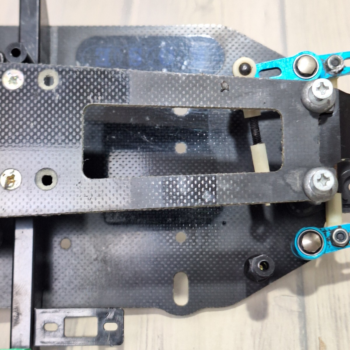 タミヤ TA02 FRP ダブルデッキシャーシ、アルミステアリングワイパーの出品です。