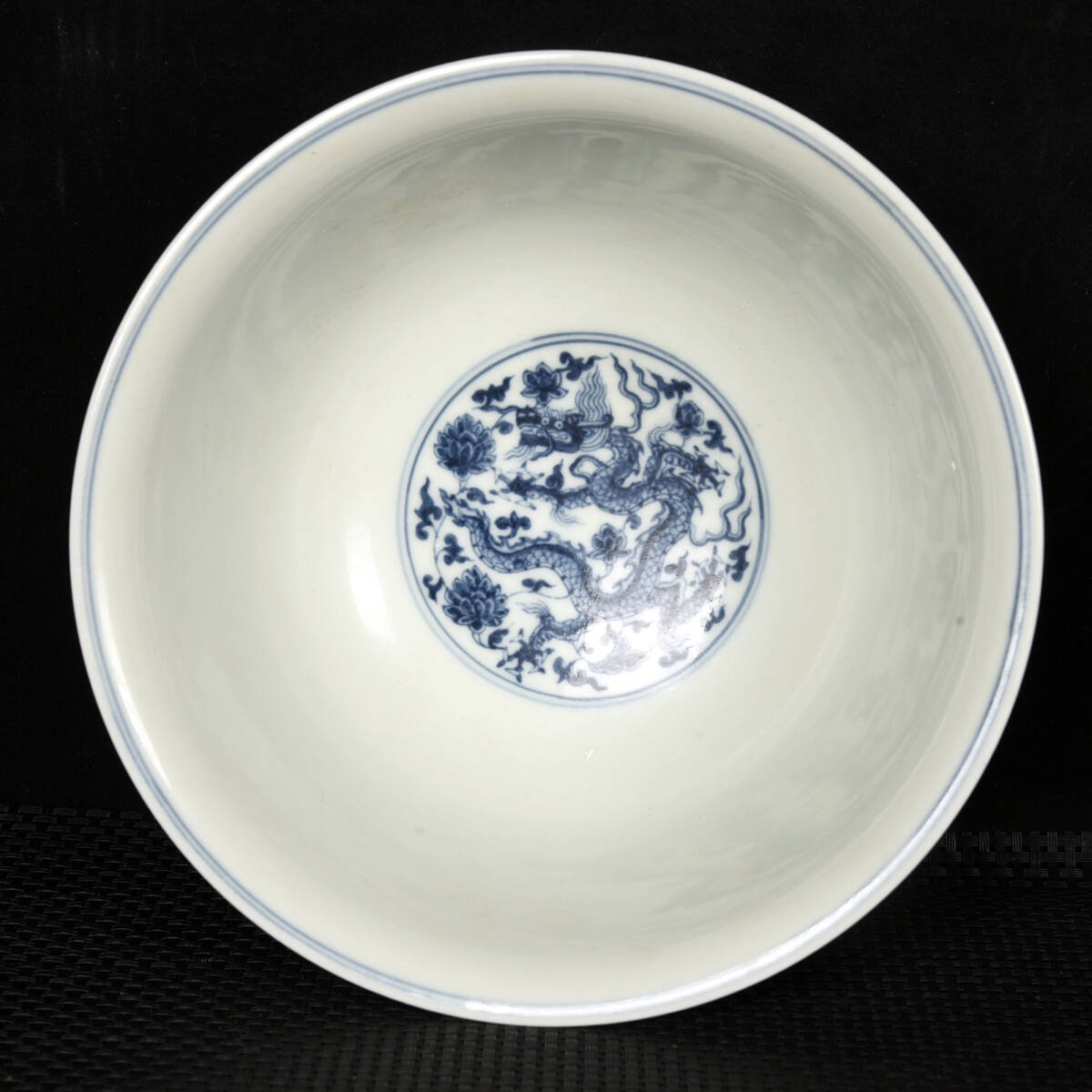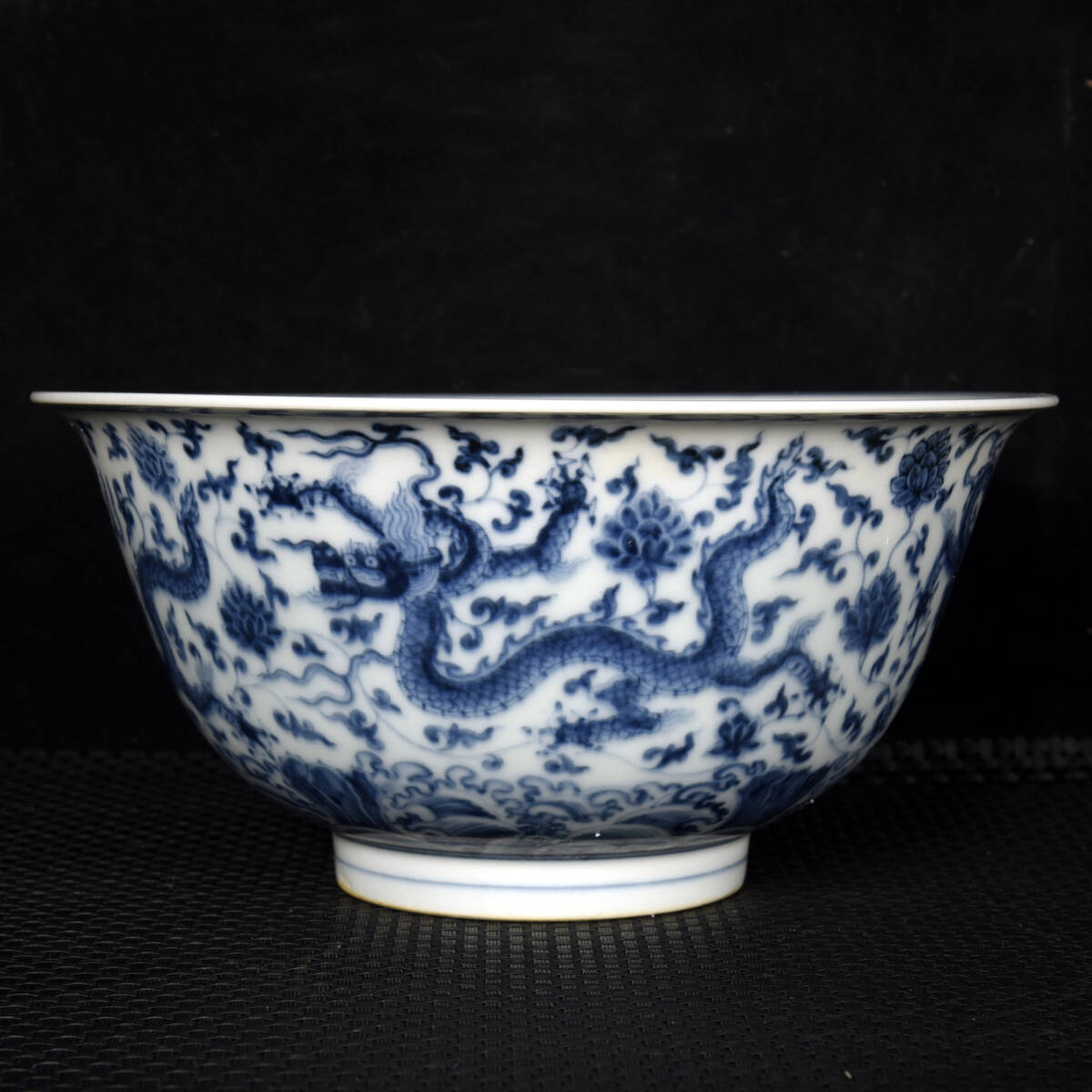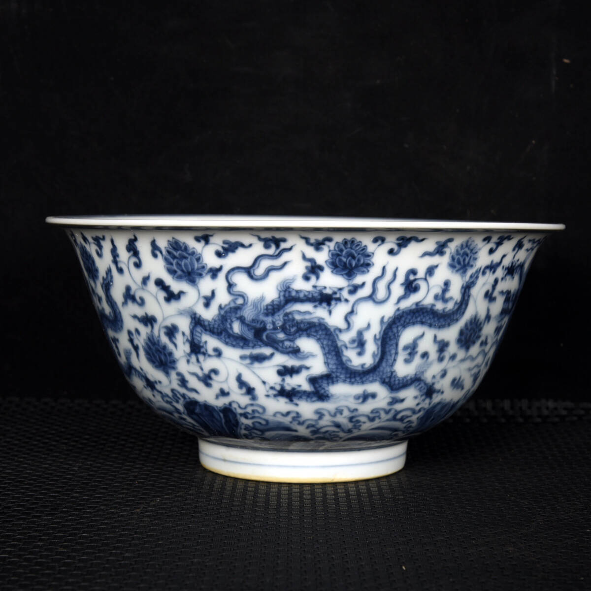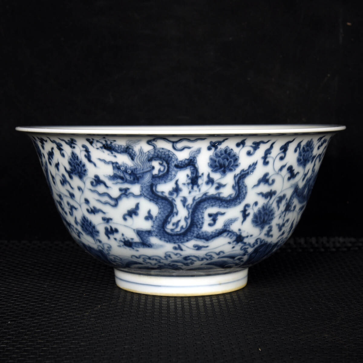館蔵 大明成化年製 青花 海水 五龍穿花紋 碗 古陶瓷 陶磁器 時代物 稀少 中国古玩 古美味 骨董品 中国古美術 古美味 蔵出