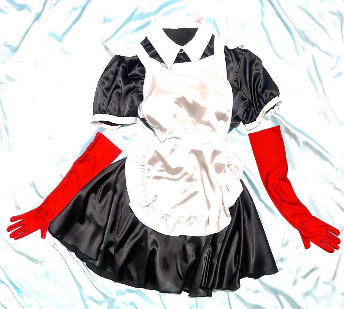 中に着ている艶々なサテンブラックのメイド服が顔を覗かせて超キュート☆