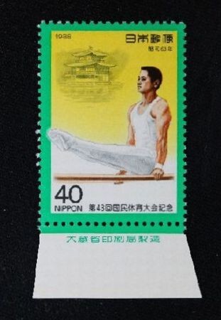 ☆出品商品名→ 第43回国体記念『平行棒と金閣寺』40円/大蔵省印刷局銘板付 NH美品