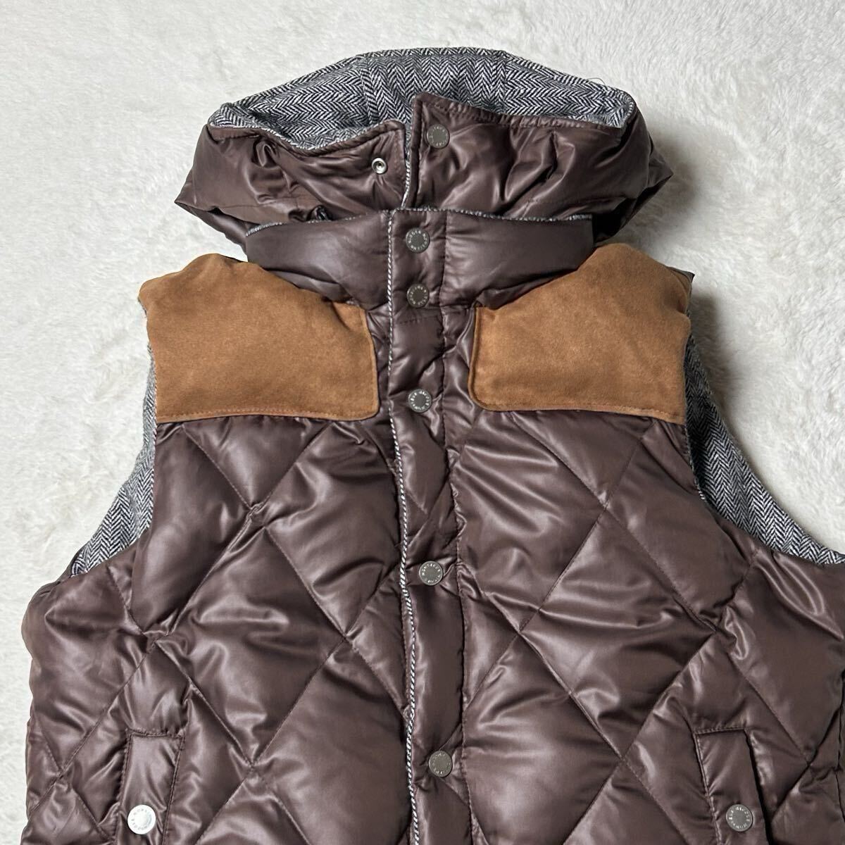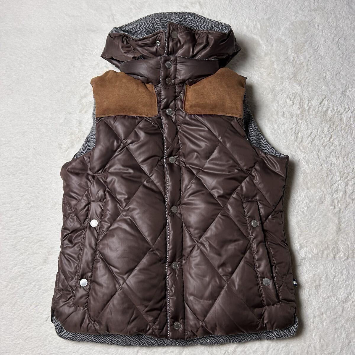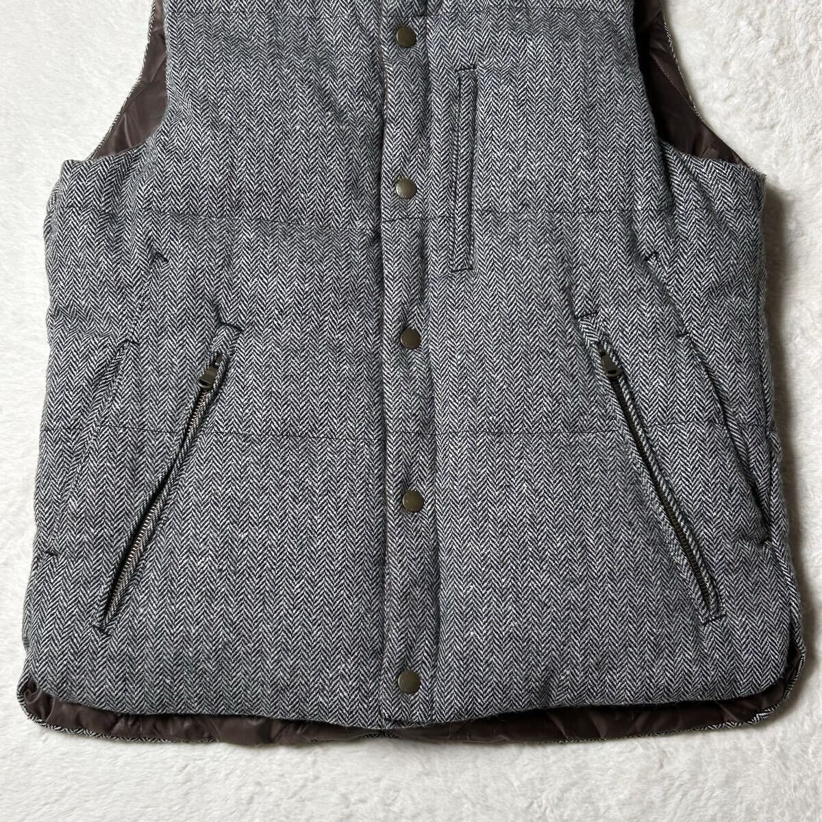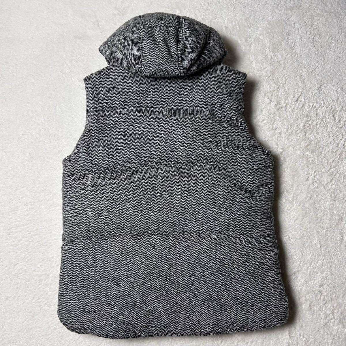 リバーシブルダウンベスト 表はグレーヘリンボーン柄、