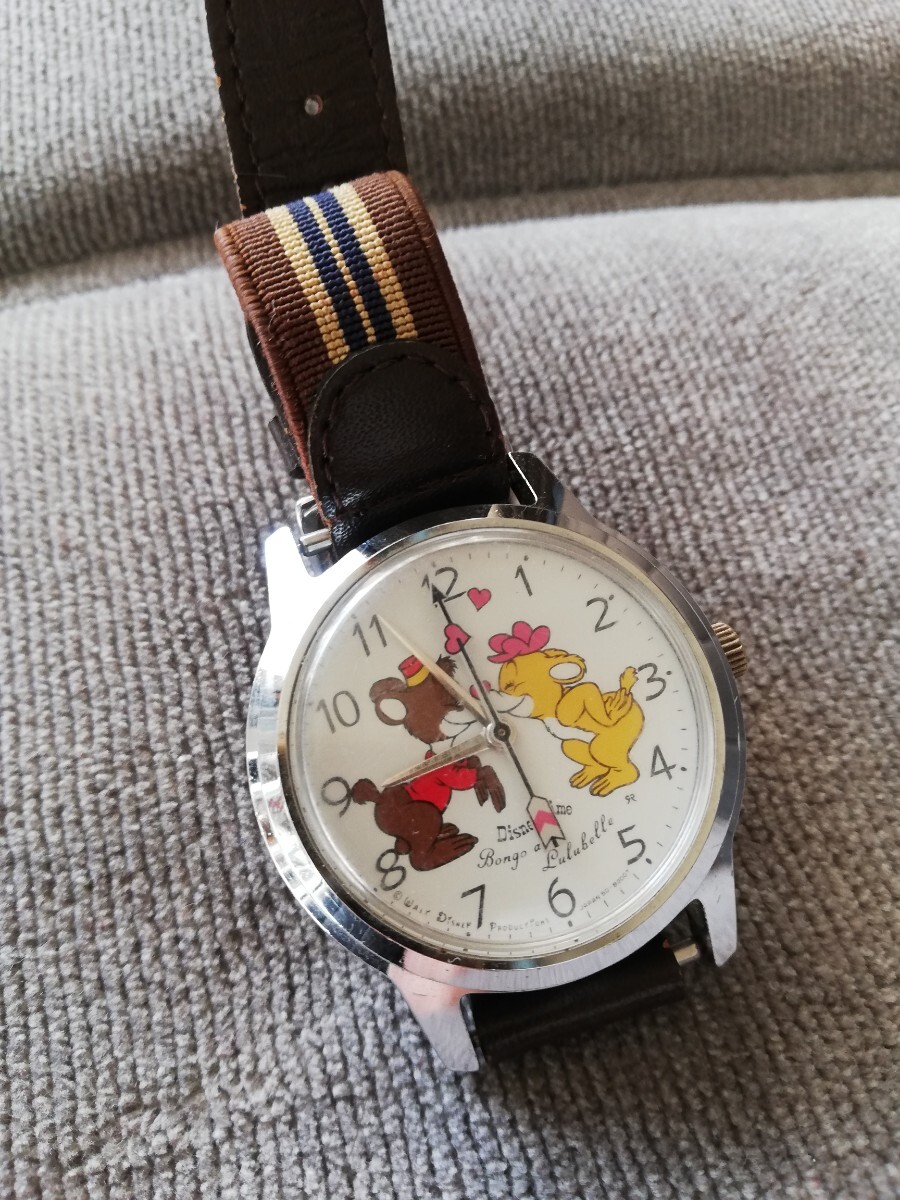 可愛らしいディズニーキャラクター「ボンゴ&ルルベル」が描かれた、希少な腕時計