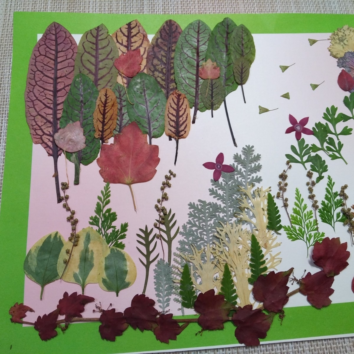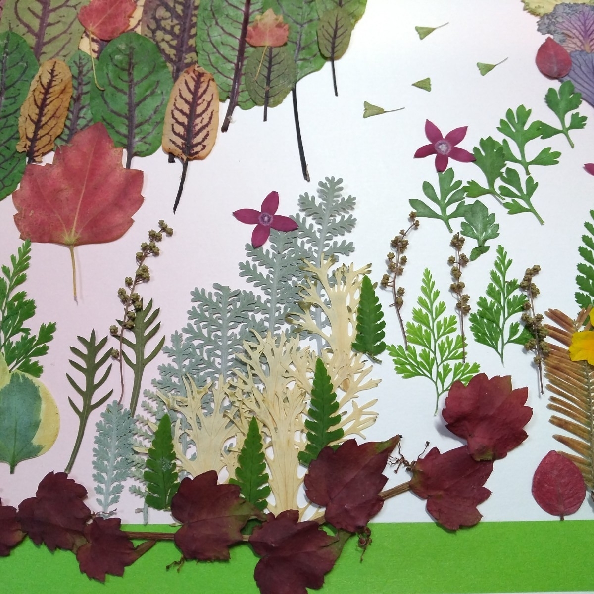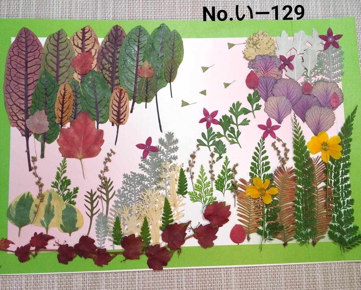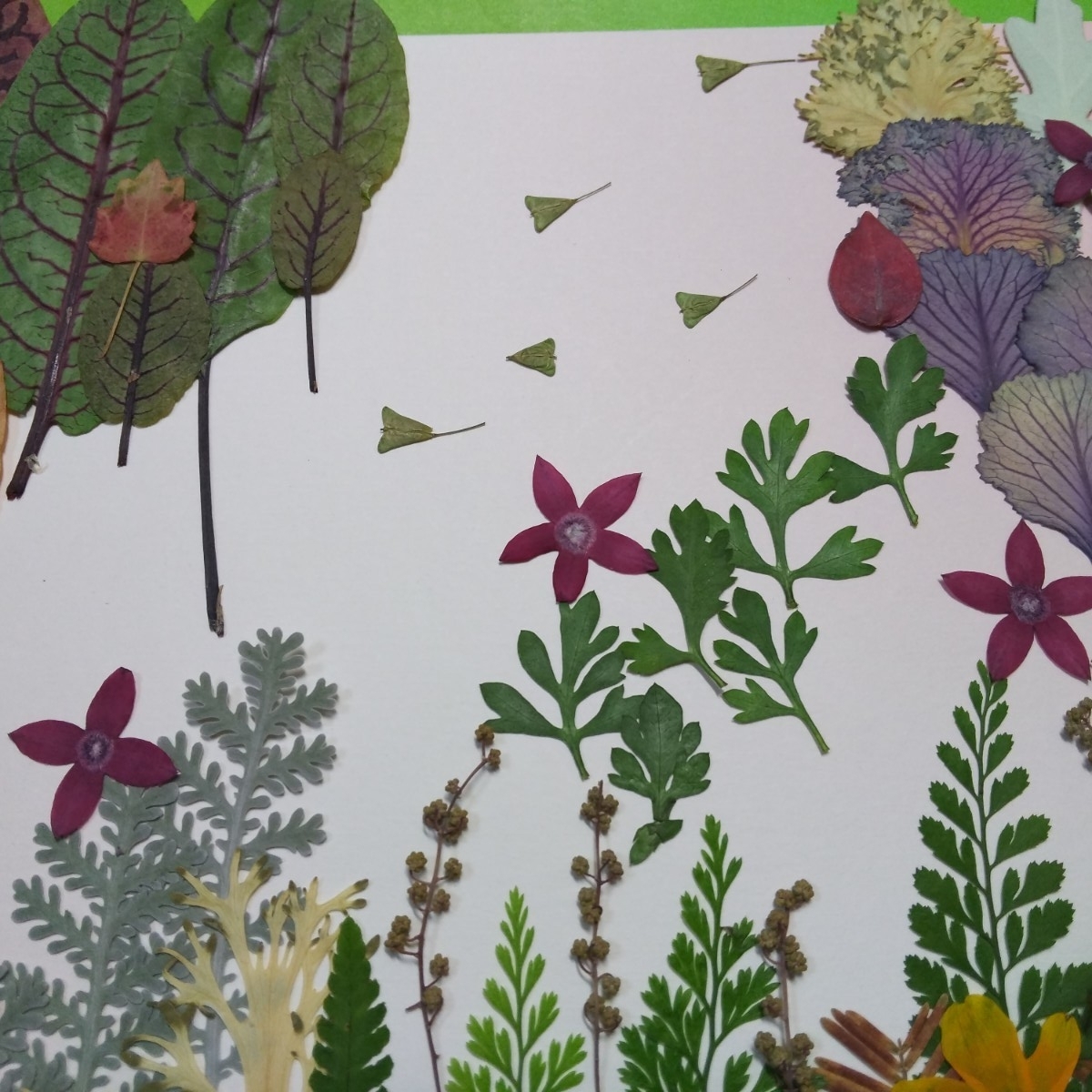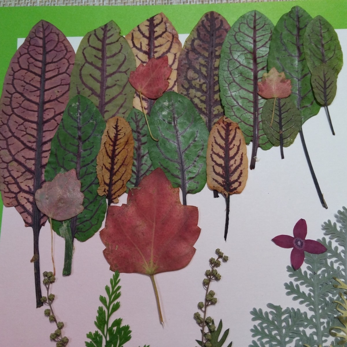 ★押し花→レッドソレル・葉牡丹・シルバーレース・メタセコイヤ・ツタ・ニチニチソウ・シダ等々
