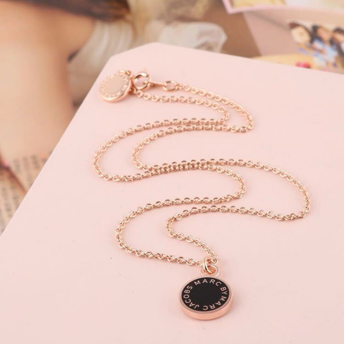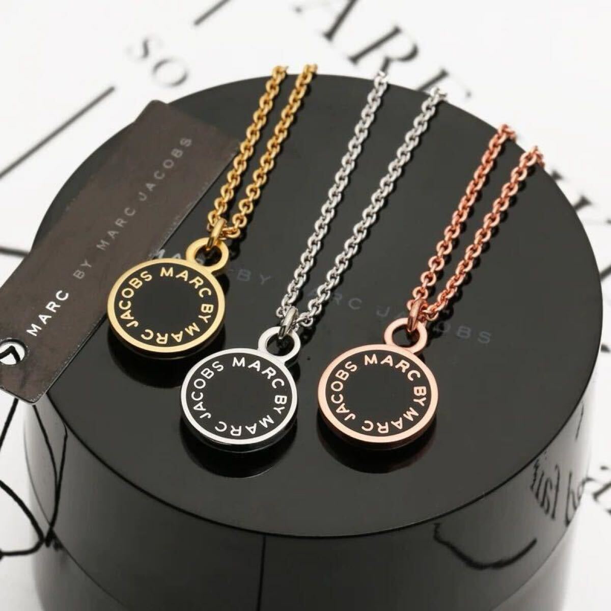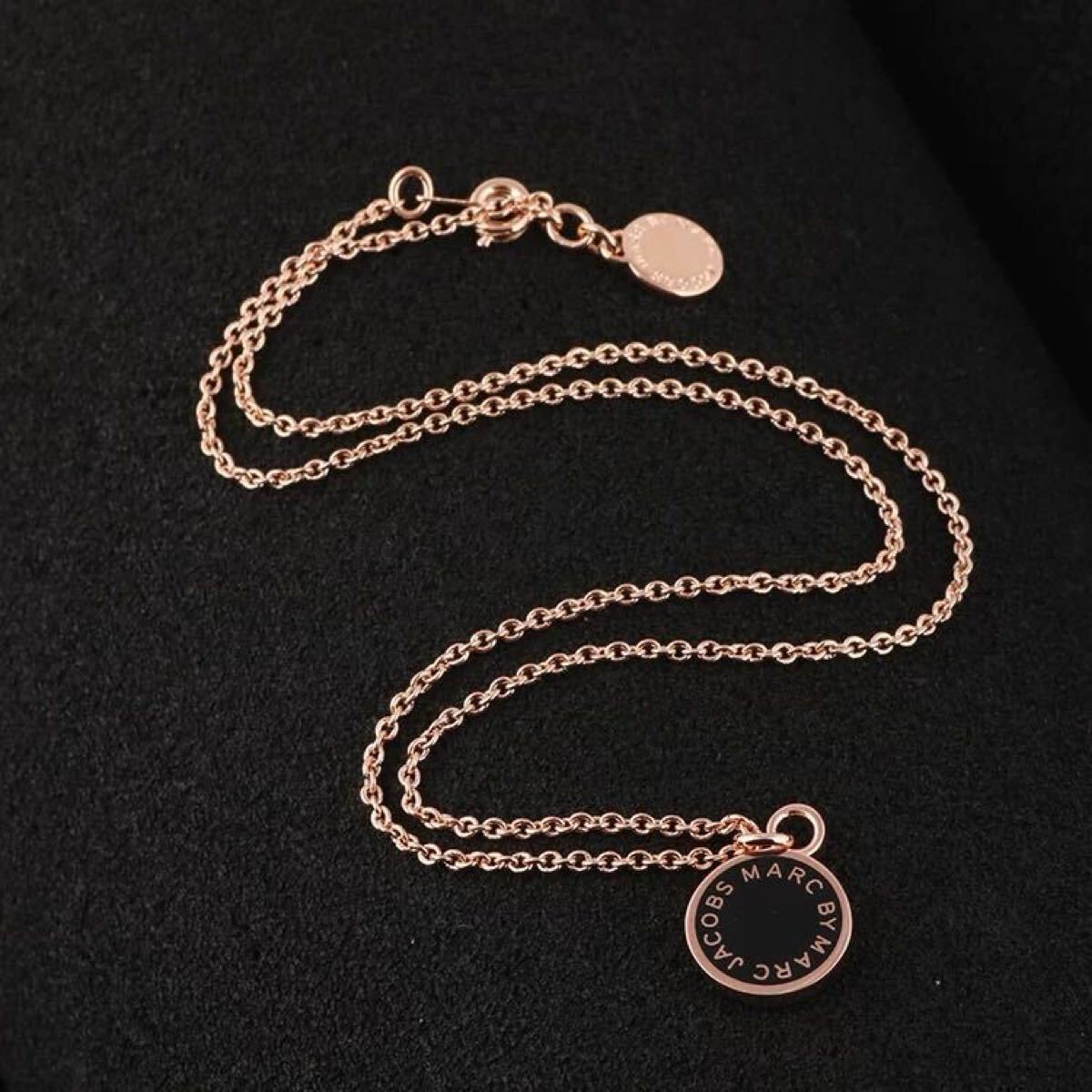 華奢なチェーンに、ロゴ入りのラウンドチャームが上品に輝き、