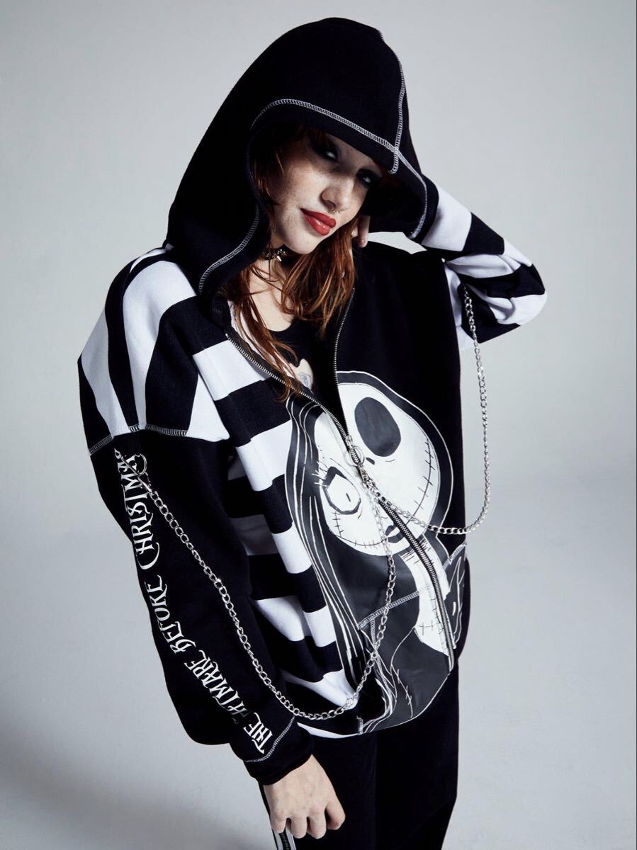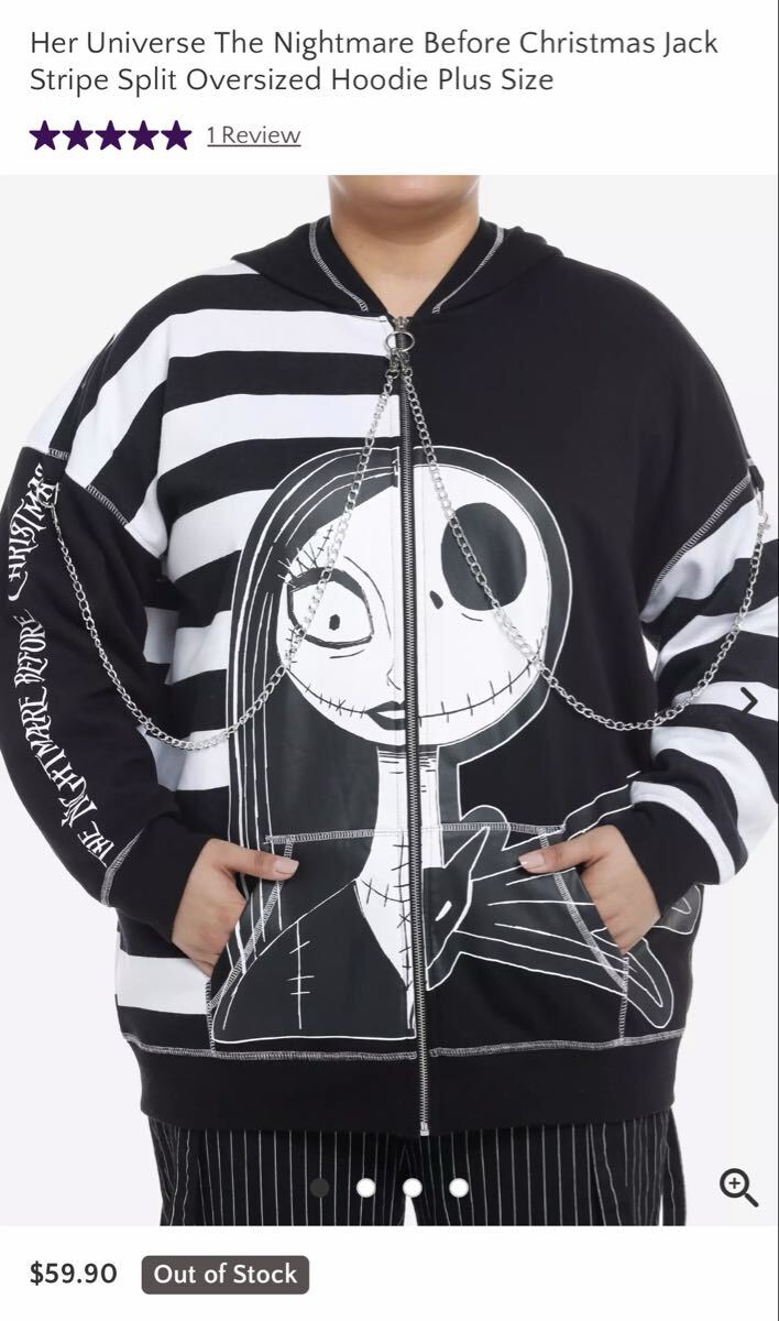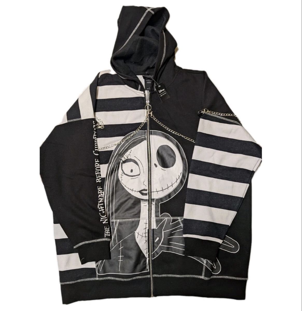 Sサイズ新品 未使用Disney ディズニー★ナイトメアー・ビフォア・クリスマス サリー ジップパーカー ボーダー 黒×白 ジャケット 男女兼用