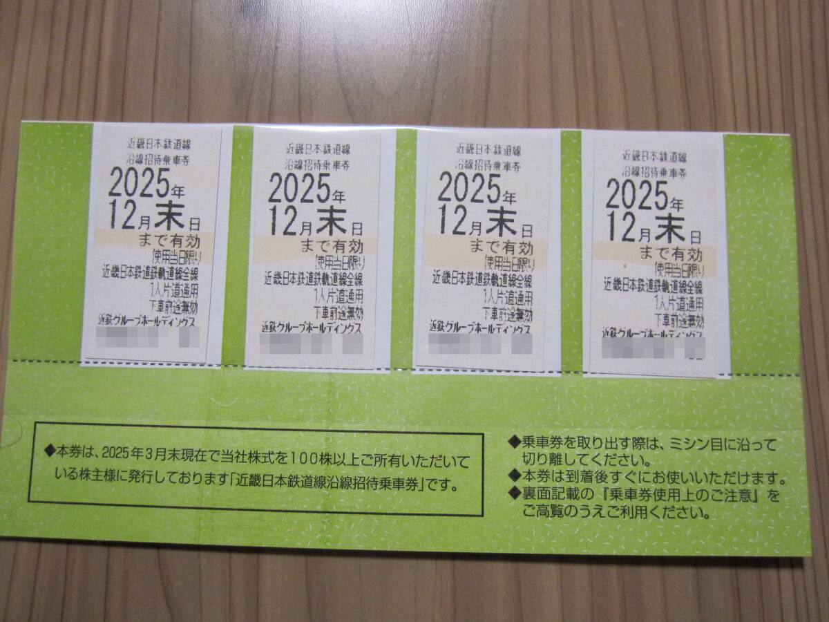 近畿日本鉄道 沿線招待乗車券 4枚セット 2025年12月末日まで