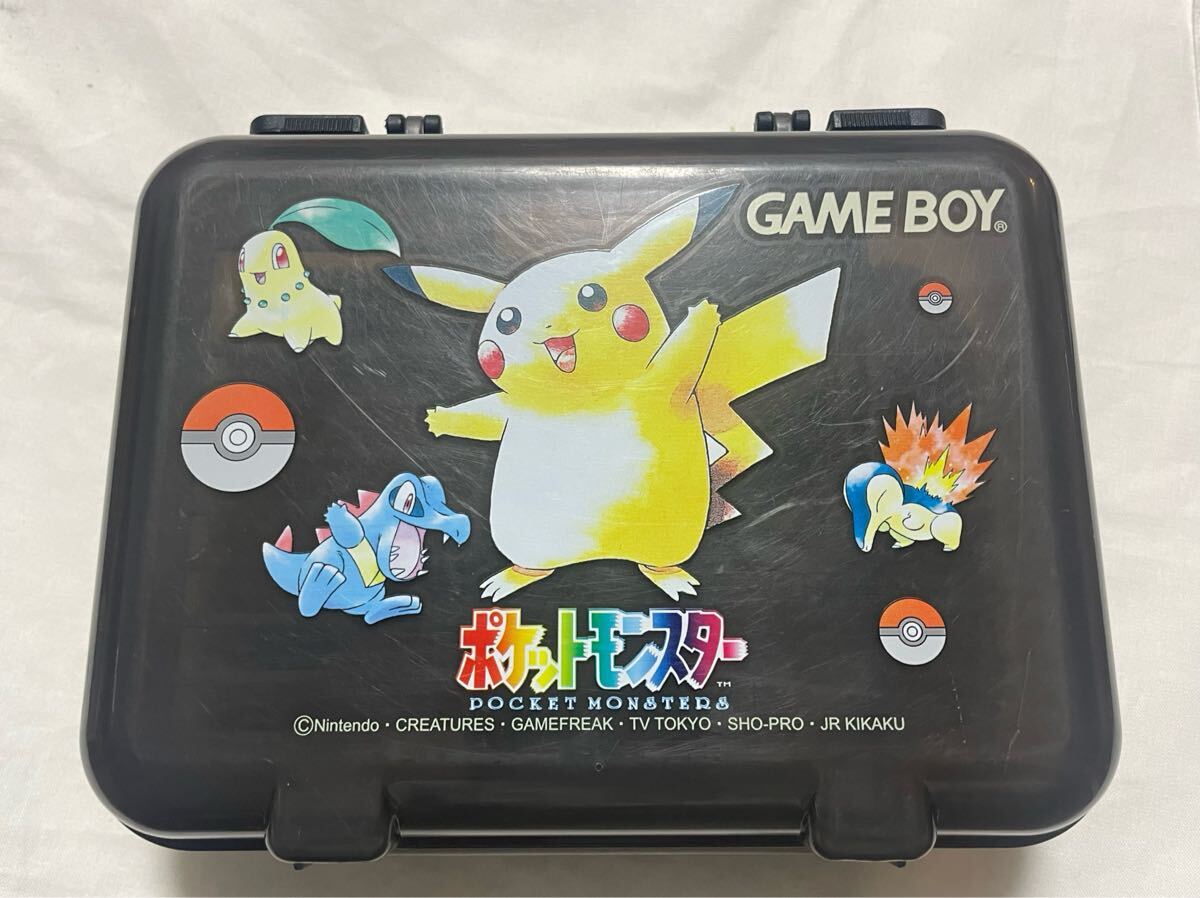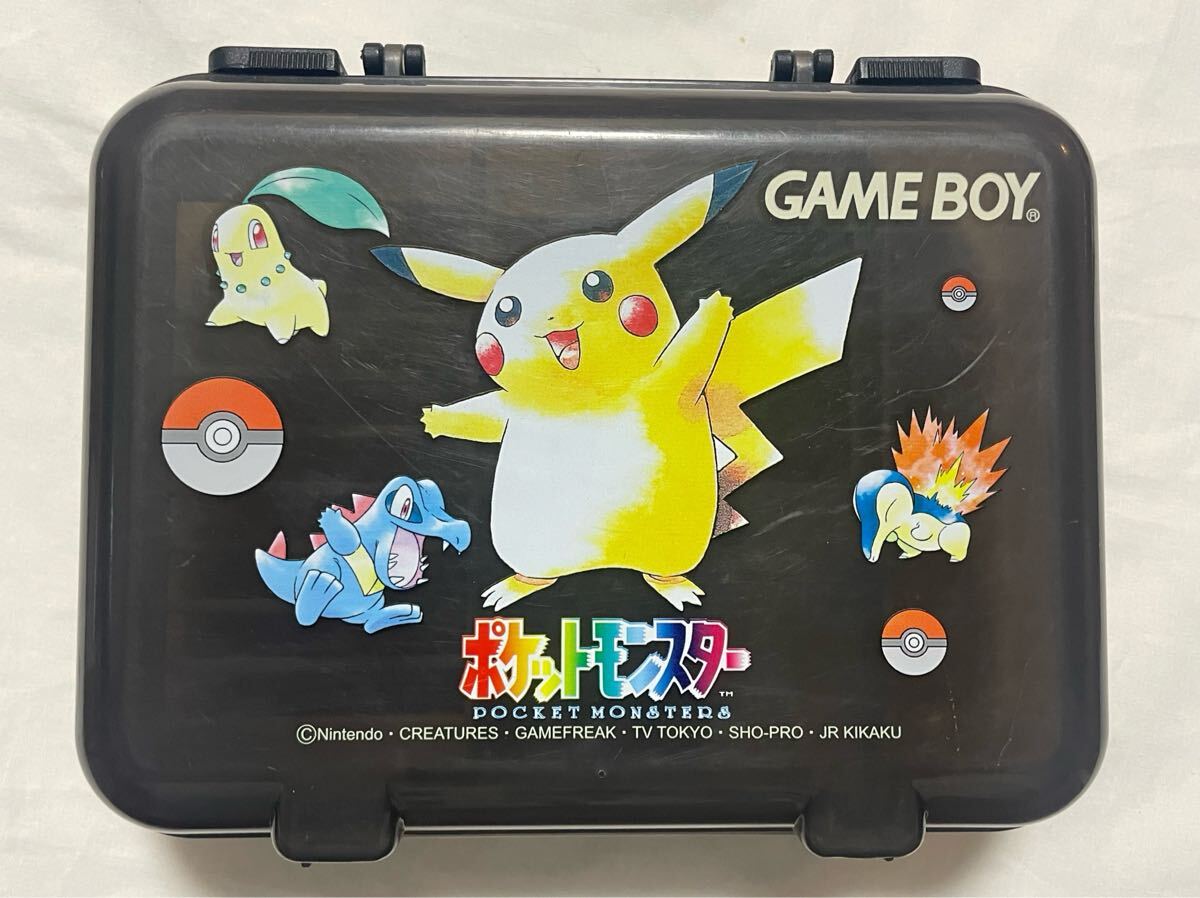 こちらは、ポケットモンスター(ポケモン)のゲームボーイ専用キャリングケースです。主に『ポケットモンスター 金・銀』が発売された当時のキャラクター(ピカチュウ、ワニノコ、チコリータ、ヒノアラシなど)がデザインされています。