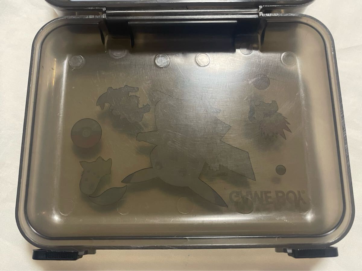 特徴: 黒い本体に賑やかなポケモンのステッカー。ケース内側には本体収納スペースと、カセットを整理できる仕切り(トレイ)が付いています。内底にはポケモンのシルエットのエンボス加工もあり、凝った作りです。