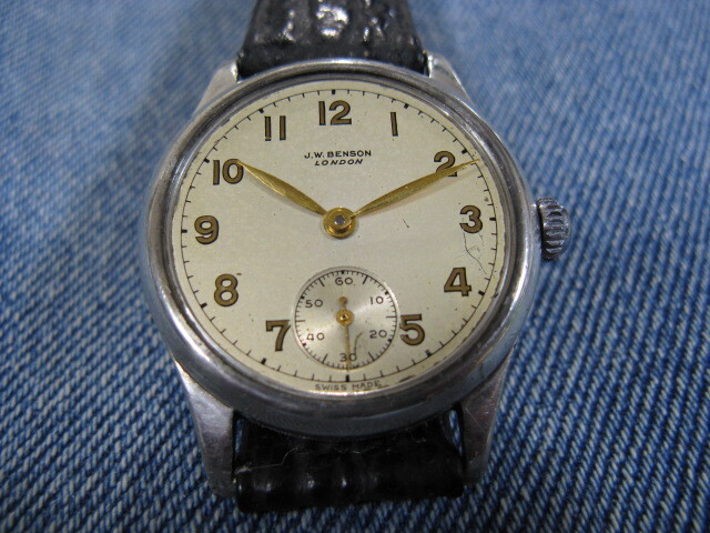 1946年製 J.W.BENSON/LONDON J.W.ベンソン ロンドン 銀無垢 ブリティッシュウォッチ 英国アンティーク手巻腕時計 稼動品 注油済み