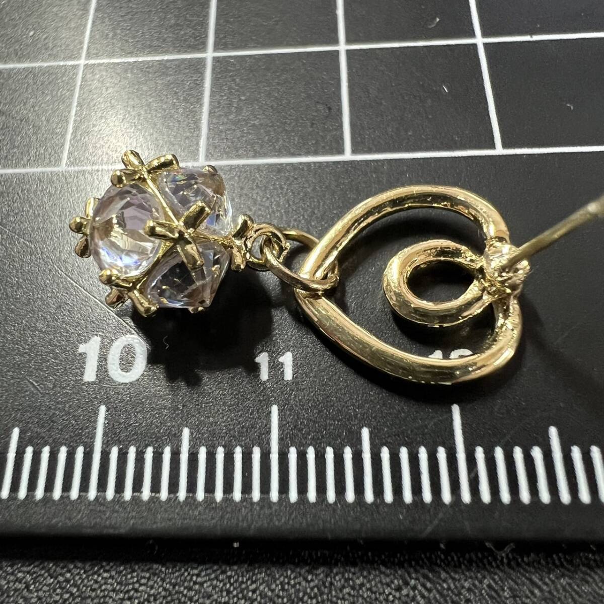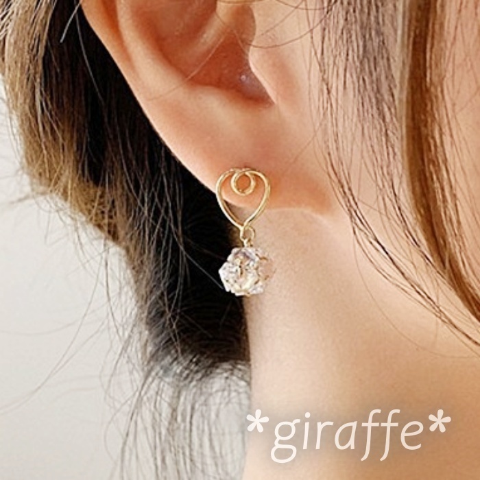 ハートの形のモチーフの下でジルコニアのキューブが揺れる可愛らしいピアスです。