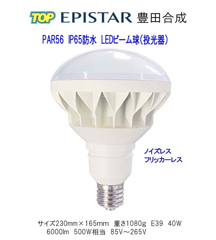 軽量 Cree PAR56 IP65防水 LED水銀灯500W相当 E39 6000LM 6000K 屋内・屋外・倉庫・ガソリンスタンド・体育館・看板・撮影・写真