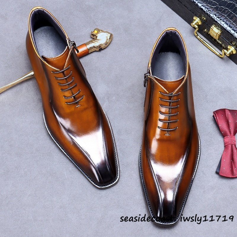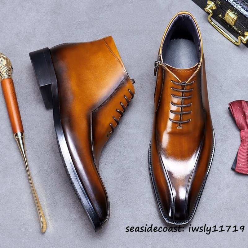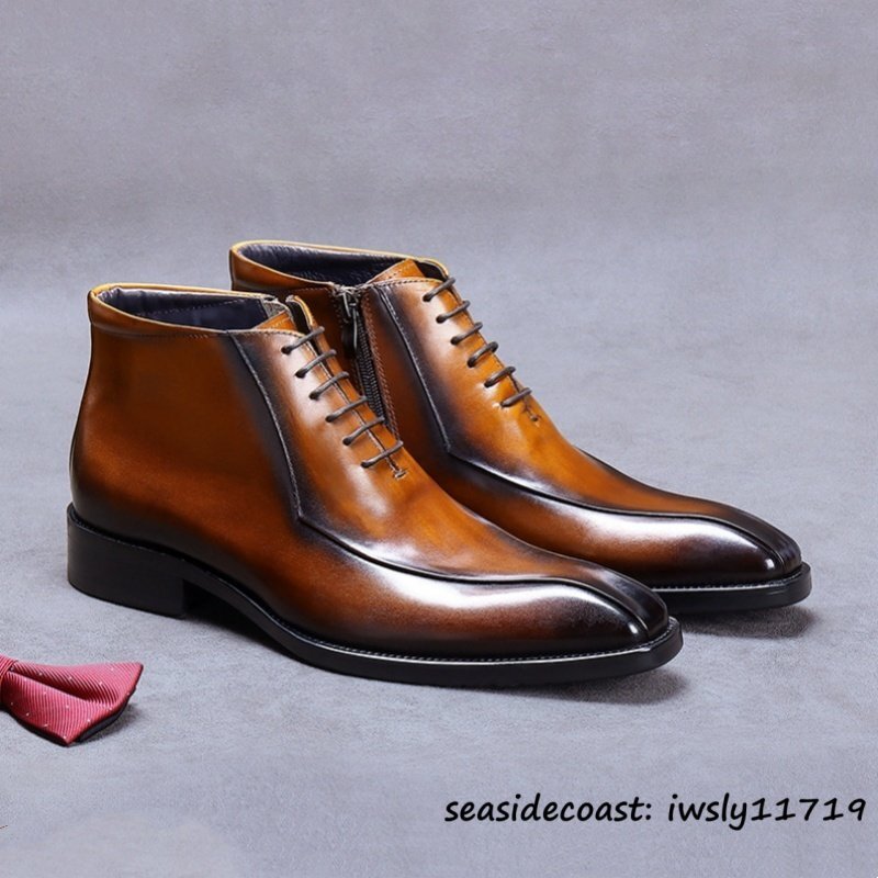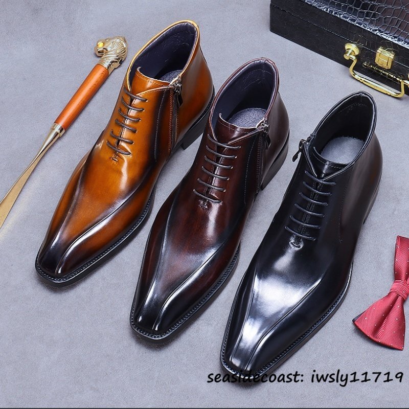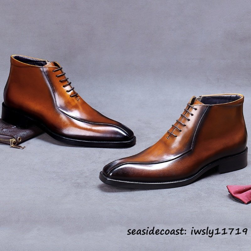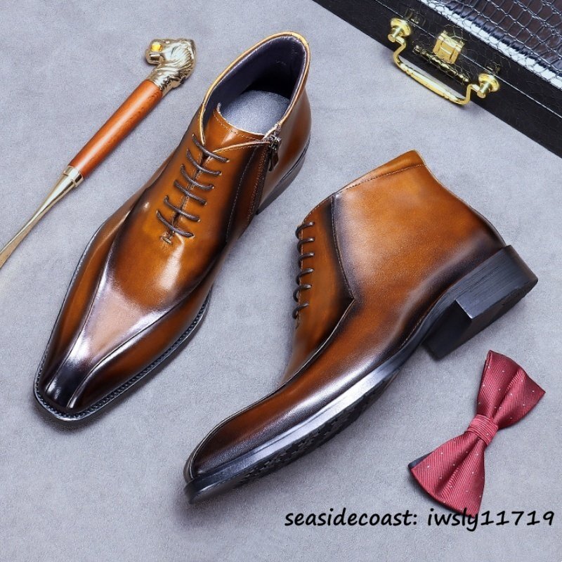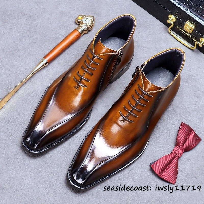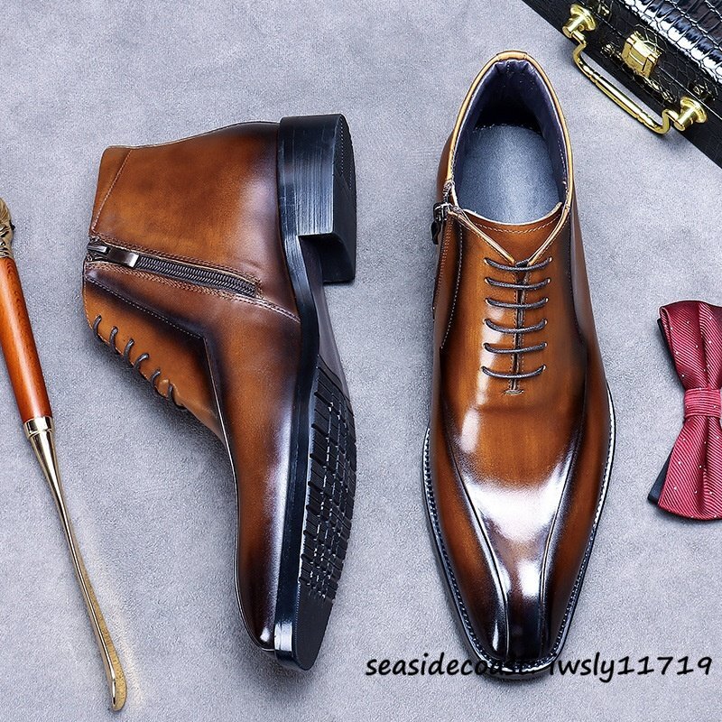 最上級*定価16万 マーティンブーツ 本革 ビジネスブーツ ショートブーツ 職人手作り 牛革 皮靴 レザーブーツ 紳士靴 革靴 ブラウン 28.0cm