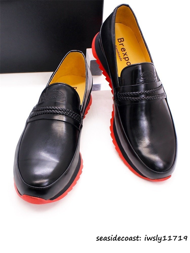 定価9万超◆最高級 ローファー メンズ 本革レザーシューズ ビジネスシューズ 牛革革靴 職人手作り 紳士靴 軽量 スリッポン ブラック 25.5cm