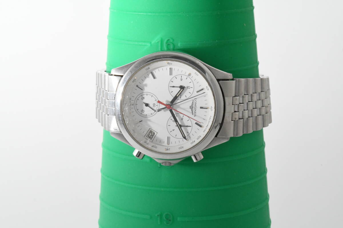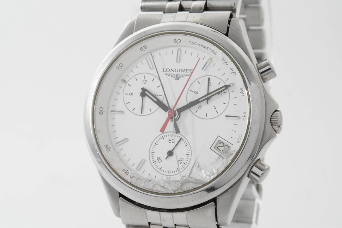 【希少品】ロンジン フラッグシップ 7281 LONGINES Flagship QUARTZ クロノグラフ デイト シルバー×白 メンズ腕時計 1207-30