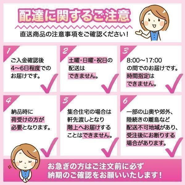 ・ メーカー直送便の為、土曜、日曜、祝日配送、時間指定は対応できません。平日の日中(8:00~17:00)の配達となります。