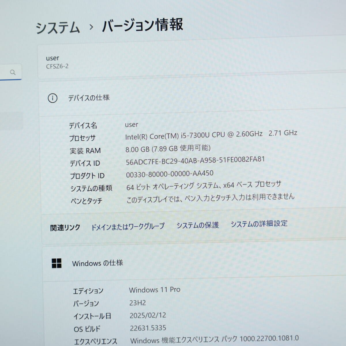 【メーカー・型名】Panasonic CF-SZ6