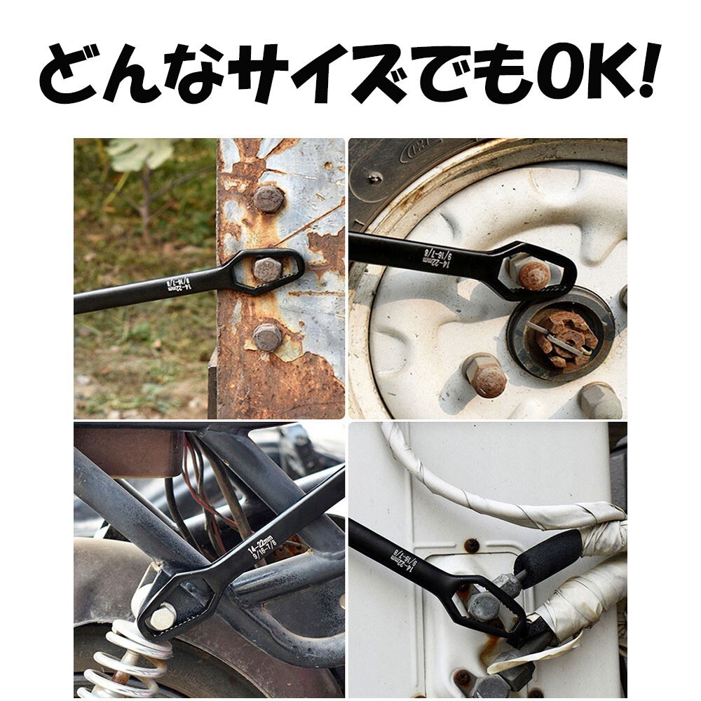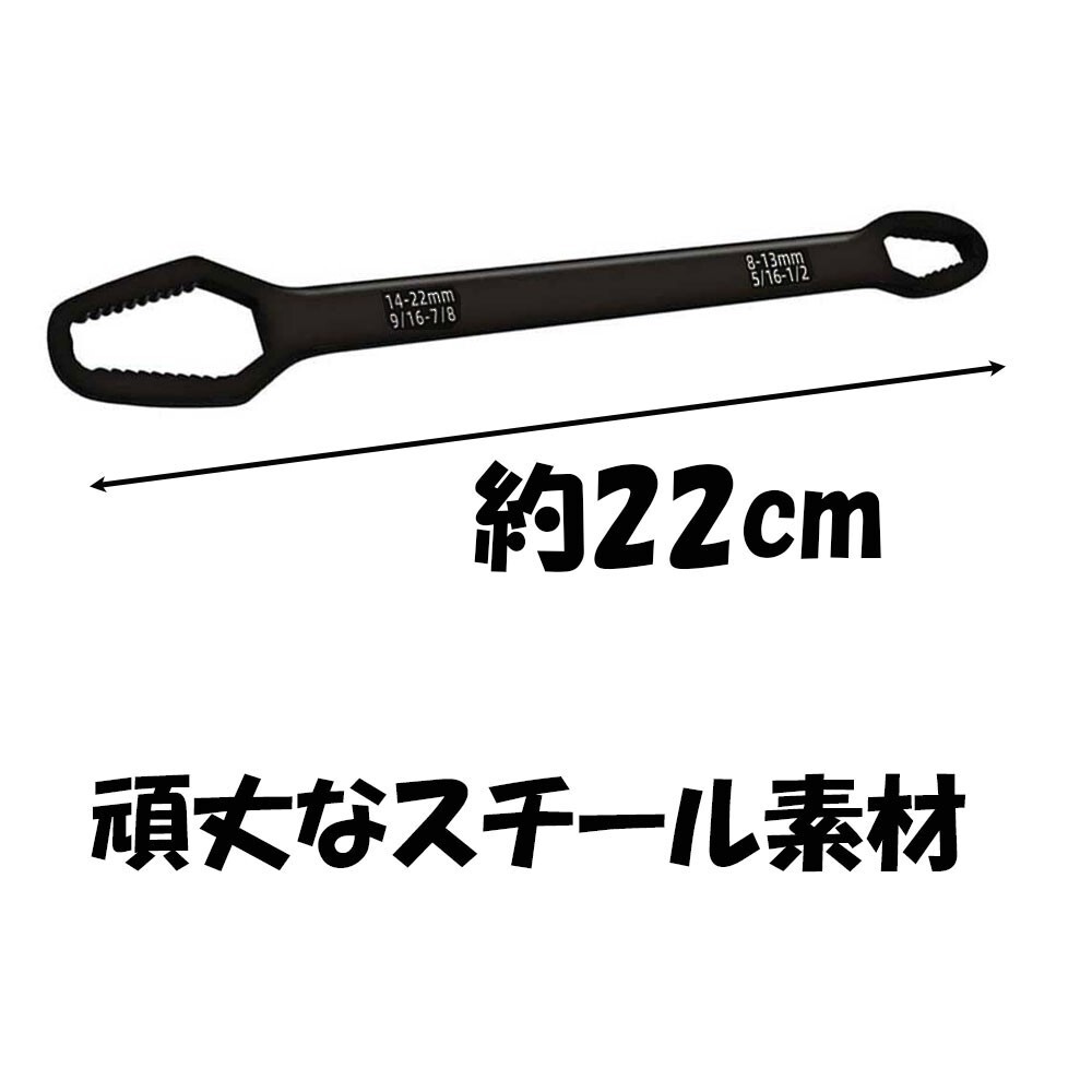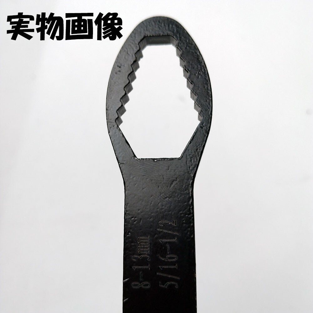 | 商品説明 | コレ1本で8~22mmに対応! ボルトやナットのサイズに関係なく使える ユニバーサルレンチです 自転車 バイク 自動車のメンテナンスはもちろんOK! 工具セットやスパナセット モンキーレンチが要らなくなるので工具箱の中がスッキリ! フリーレンチ マジックレンチ |