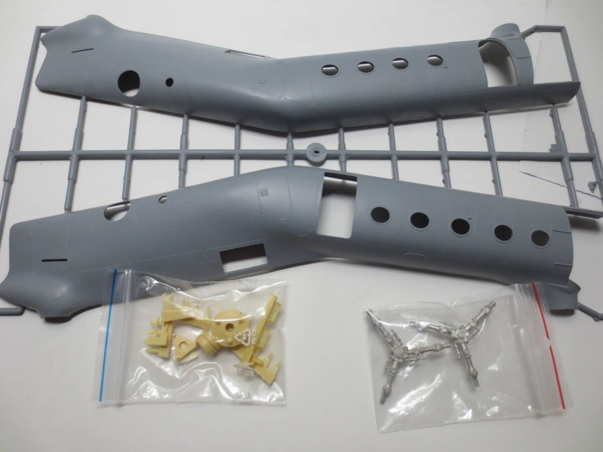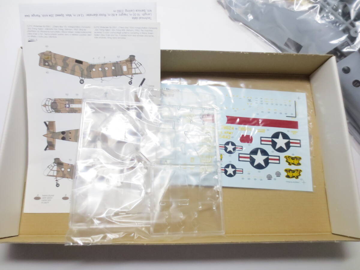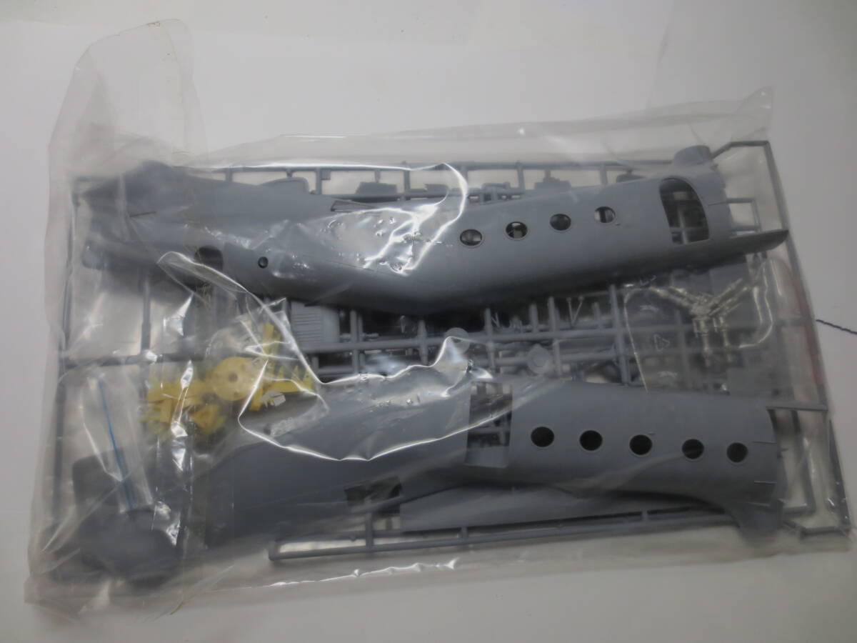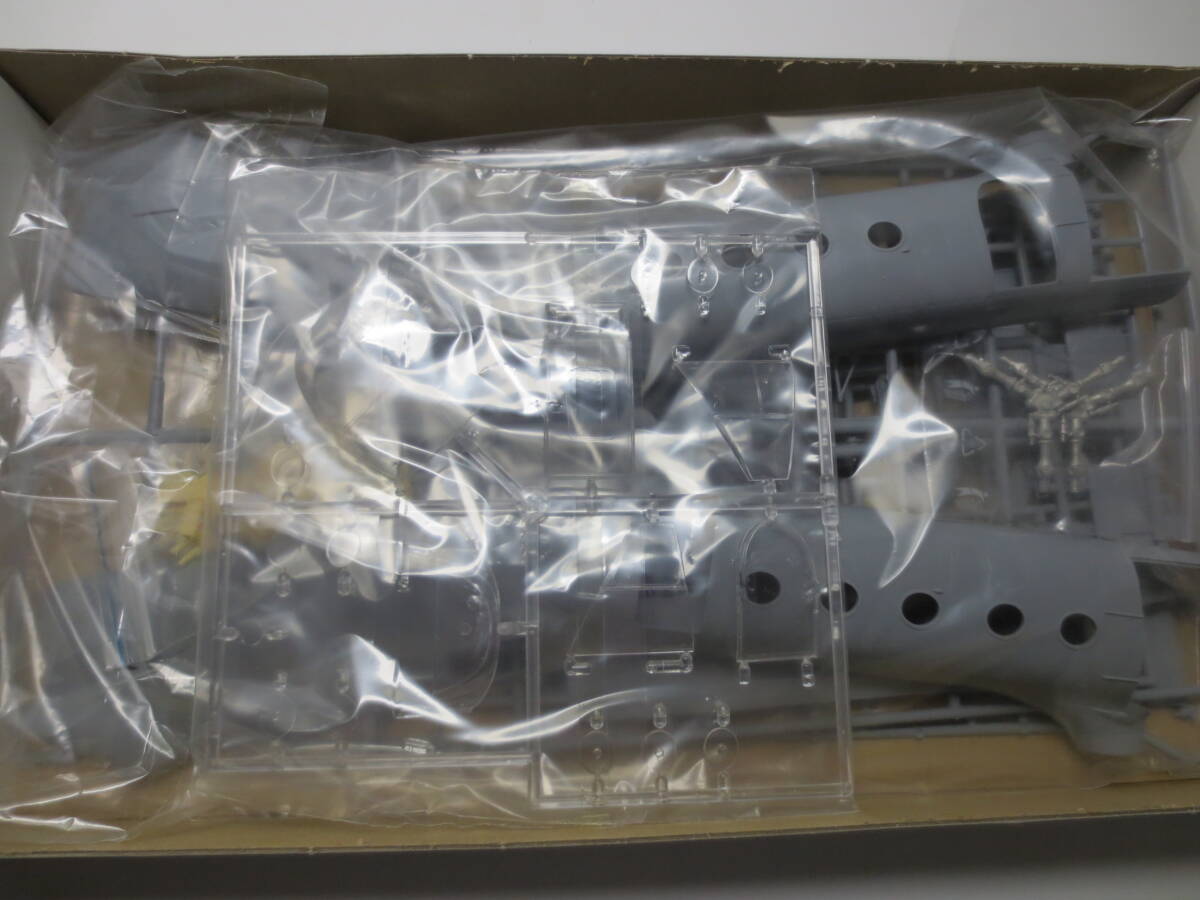| ○ スペシャルホビー H-21 ショーニー ”フライングバナナ” 1/48の キットです。 ○中袋は開封して写真を撮りました、エッチングパーツも付いています。 | |