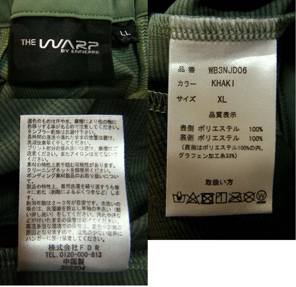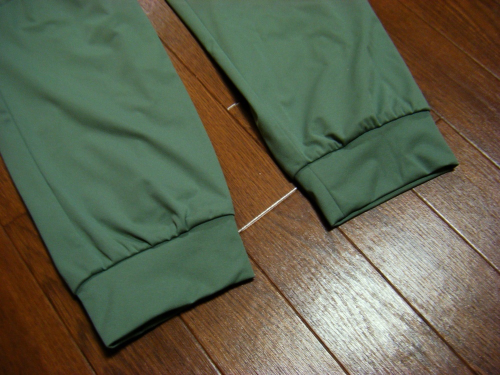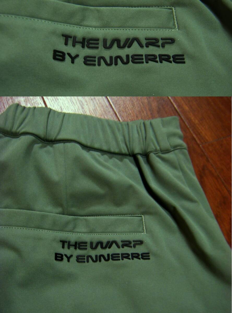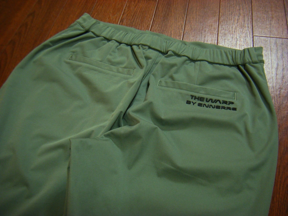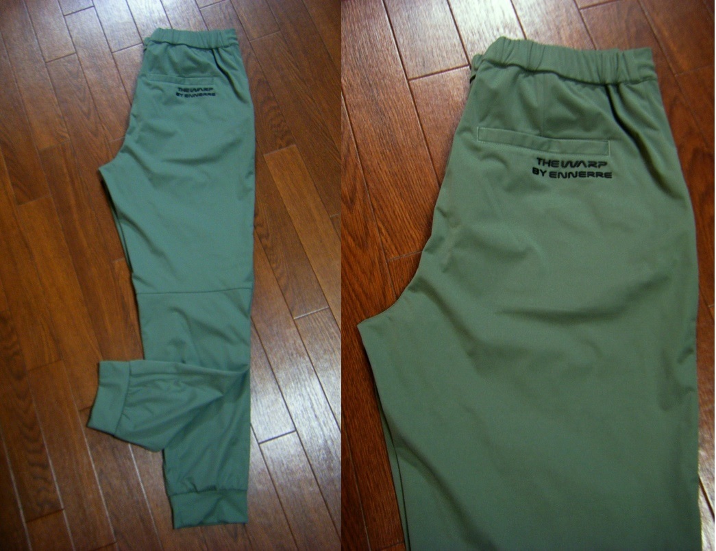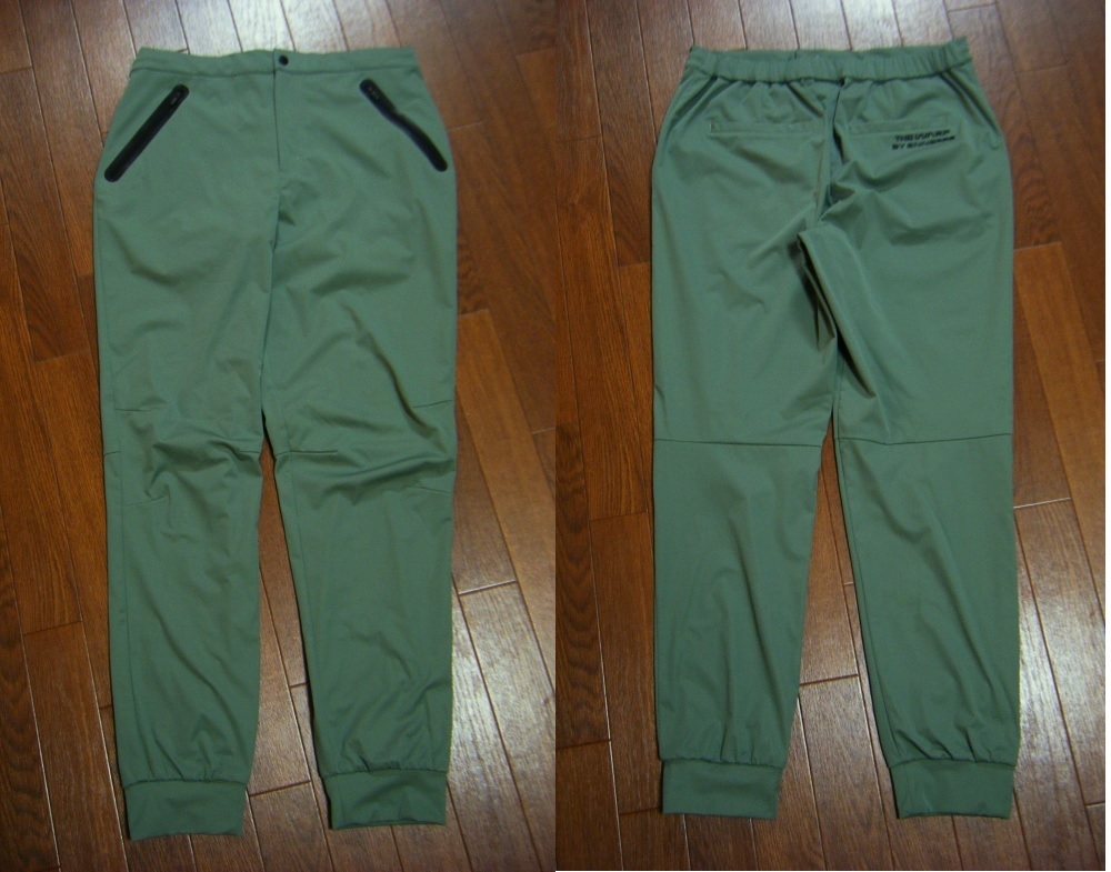 超伸縮/超美品〇ザ.ワープ THE WARP ジョガーパンツ LL ラバーロゴ 止水ジップポケット 切り返し グリーン系カーキ
