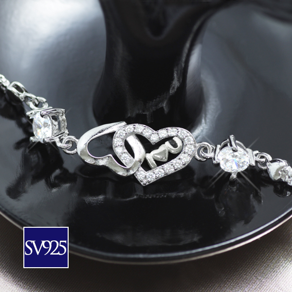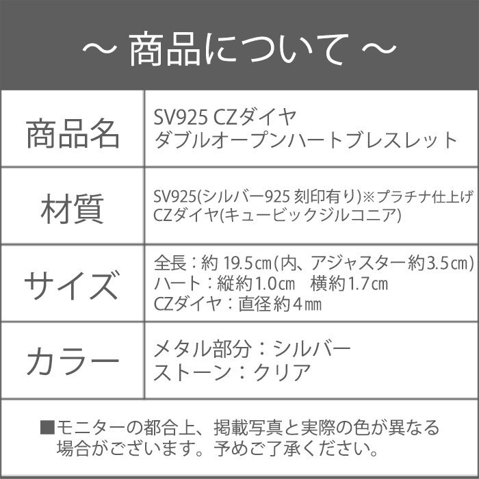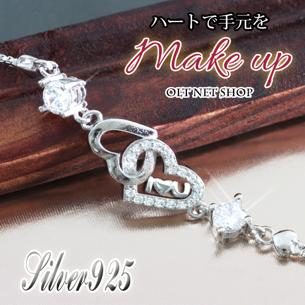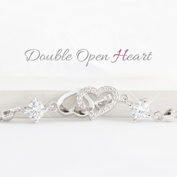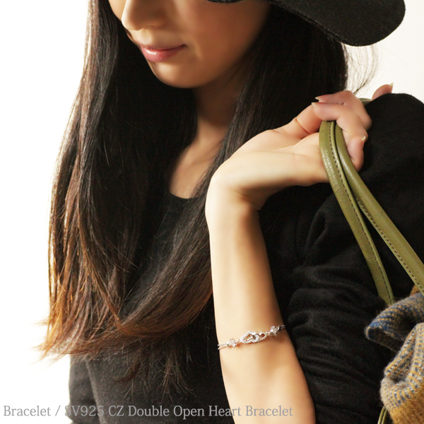ブレスレット レディース ハート ジルコニア シルバー 銀 プラチナ仕上げ 上品 女性 / SV925 CZダイヤ ダブルオープンハートブレスレット