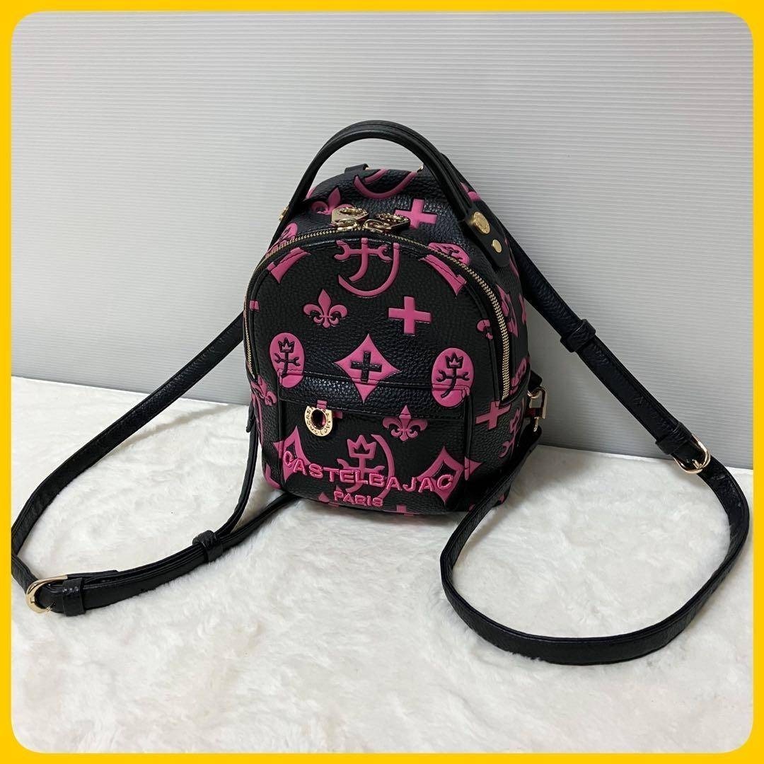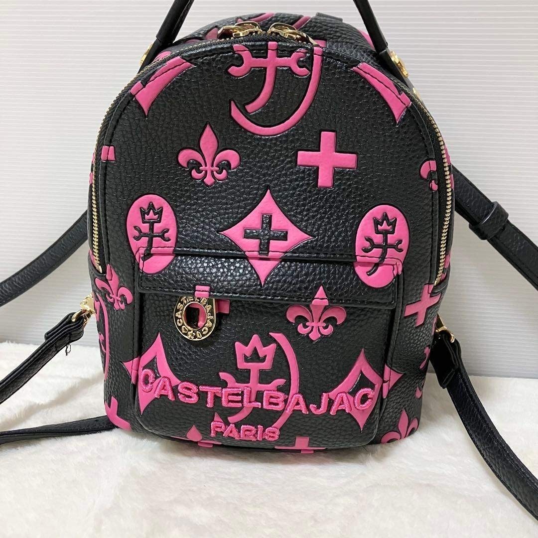 未使用級 CASTELBAJAC ミニ リュック モノグラム 黒 ピンク バッグ