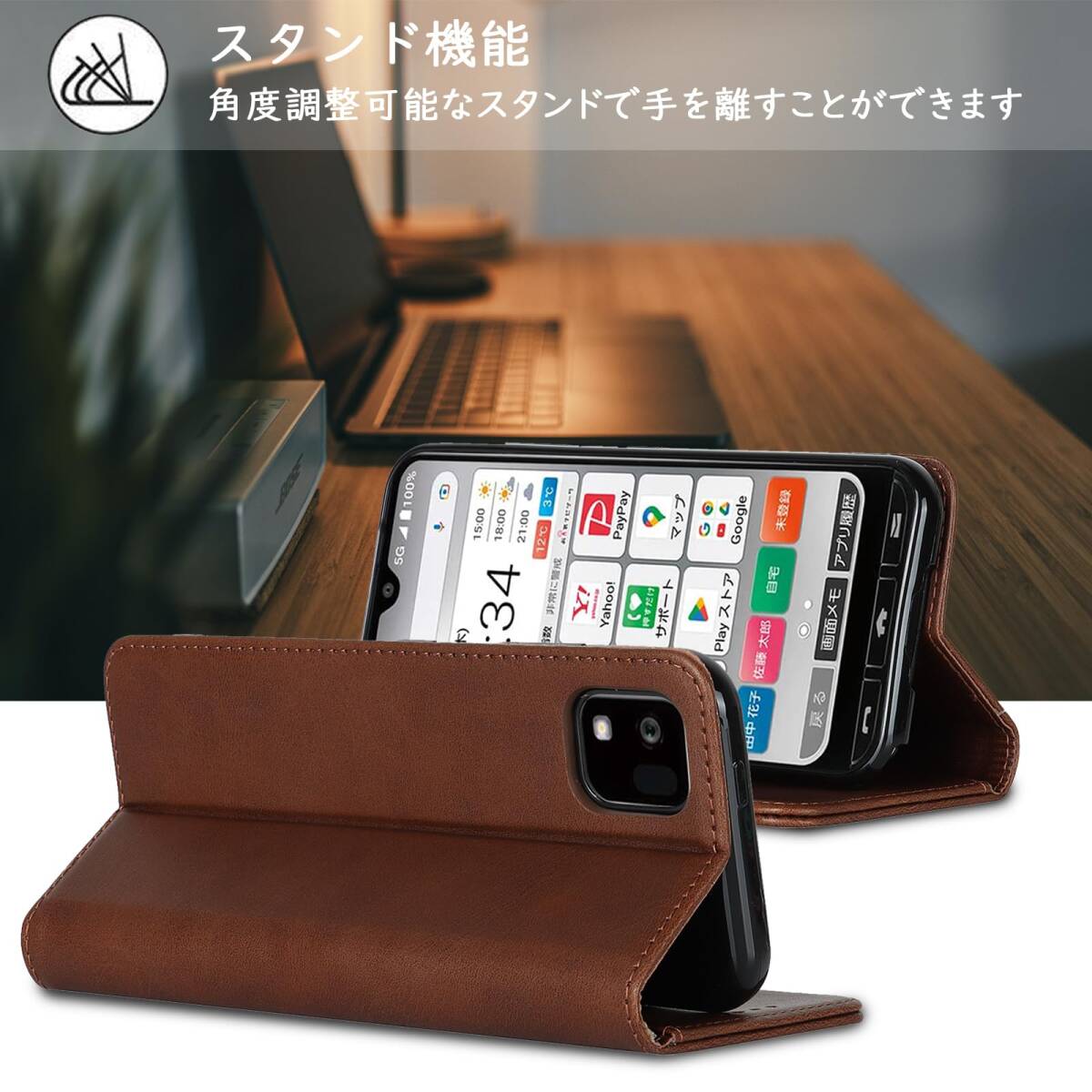 【Hamany】 京セラ かんたんスマホ3 ケース 手帳型 a205kc ケース ワイモバイル 簡単スマホ3 ケース 財布型 内蔵マグネット カード収納 ストラップホール スタンド機能 耐衝撃-ヴィンテージダークブラウン
