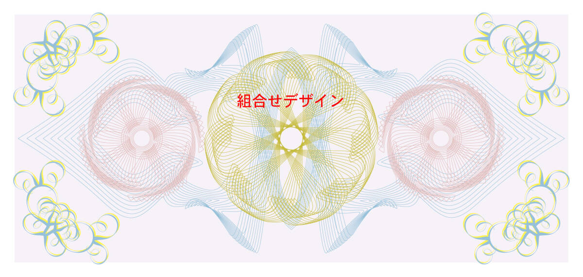 歯車・デザイン定規 ラインアートスピログラフ応用のデザイン(A)+(B)+(おまけC)
