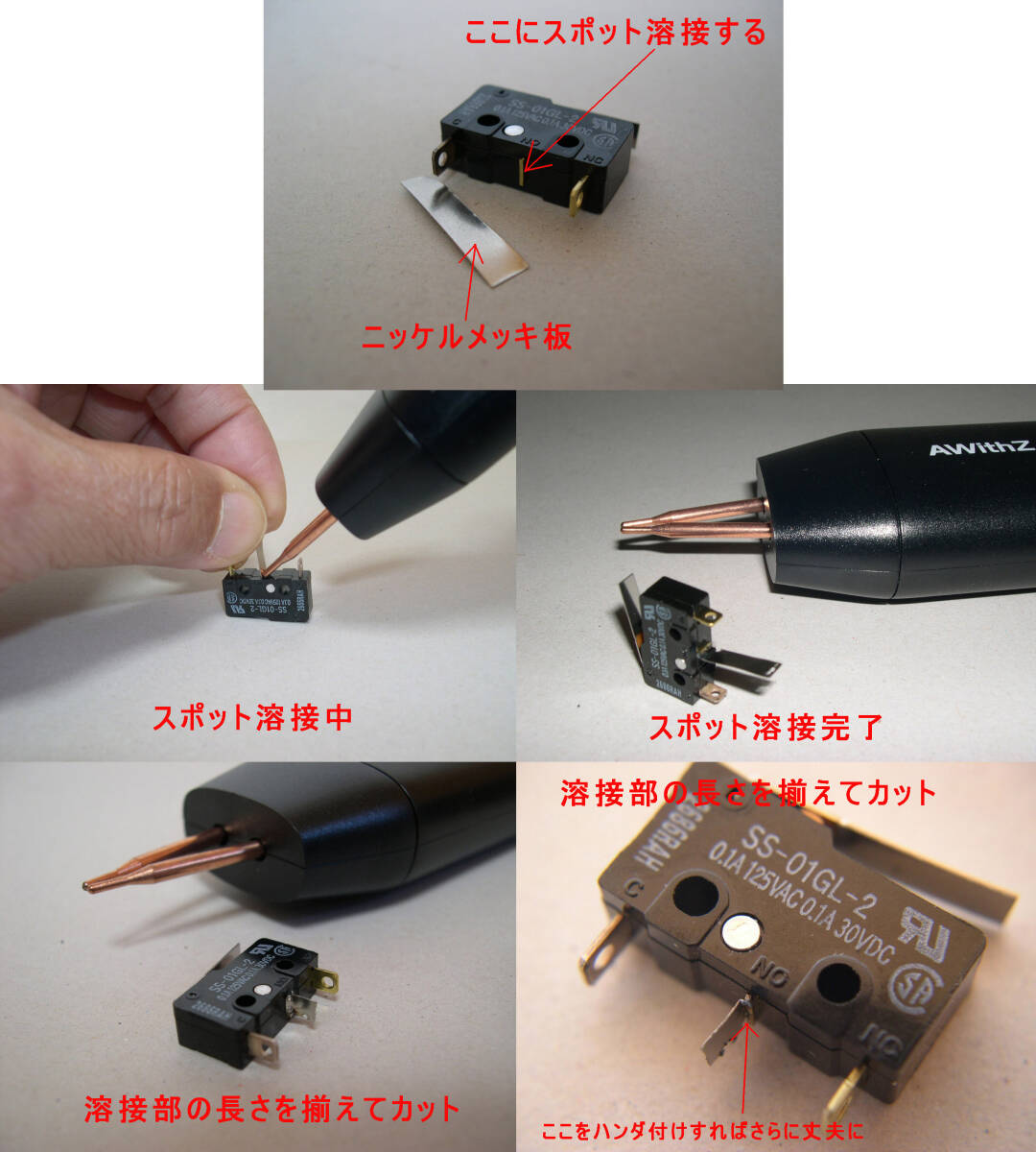 W921 マイクロスイッチ 常時ON スイッチ押しでOFFに SS-01GL-2加工②
