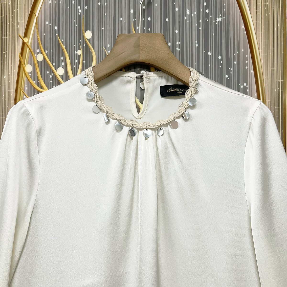 定価4万★christian milada・ミラノ発・ブラウス★シルク混 薄手 ソフト 長袖 レース スパンコール 通勤 デート レデイーズ S/34サイズ