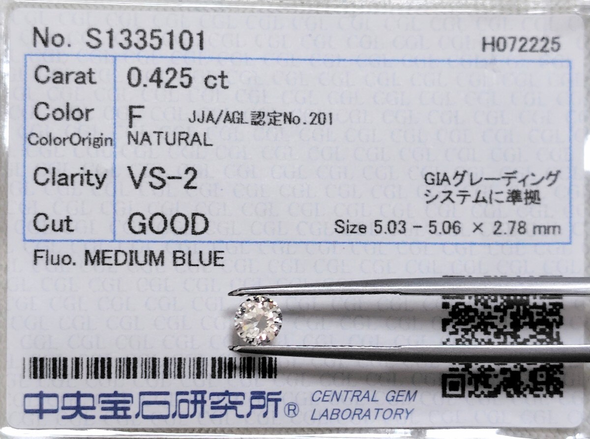 【12/13★安値〜】天然ダイヤモンド ルース 0.425ct F VS2 鑑別 CGL│B3036tq【0.4ct】 ダイヤ diamond