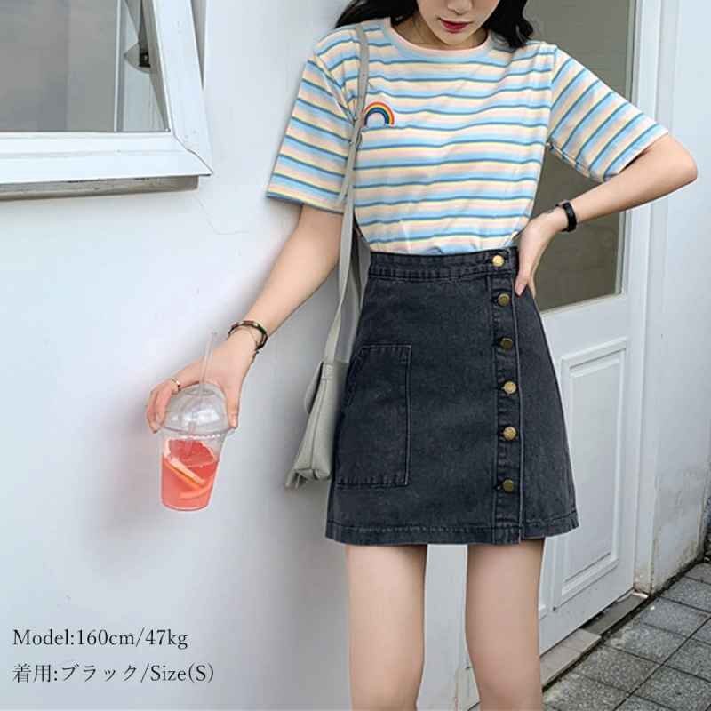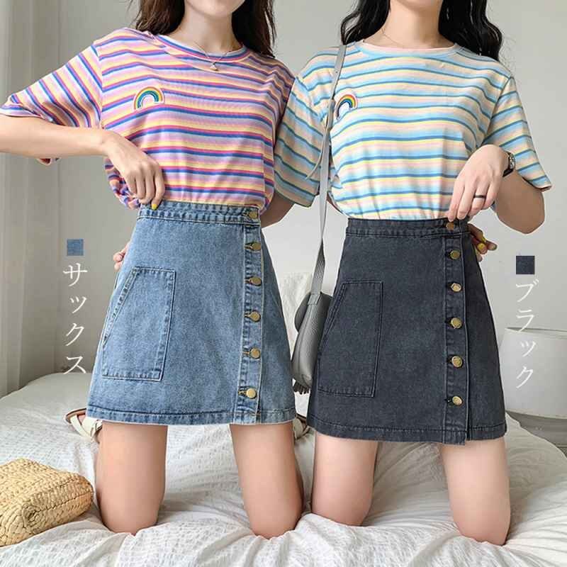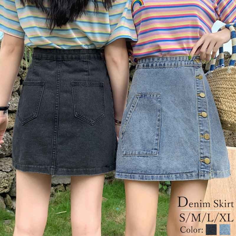 便利な前後ポケット付き、飽きのこないシンプルな台形デニムスカート。カジュアルなトップスでも、ガーリーなトップスでも合う万能なスカートです。