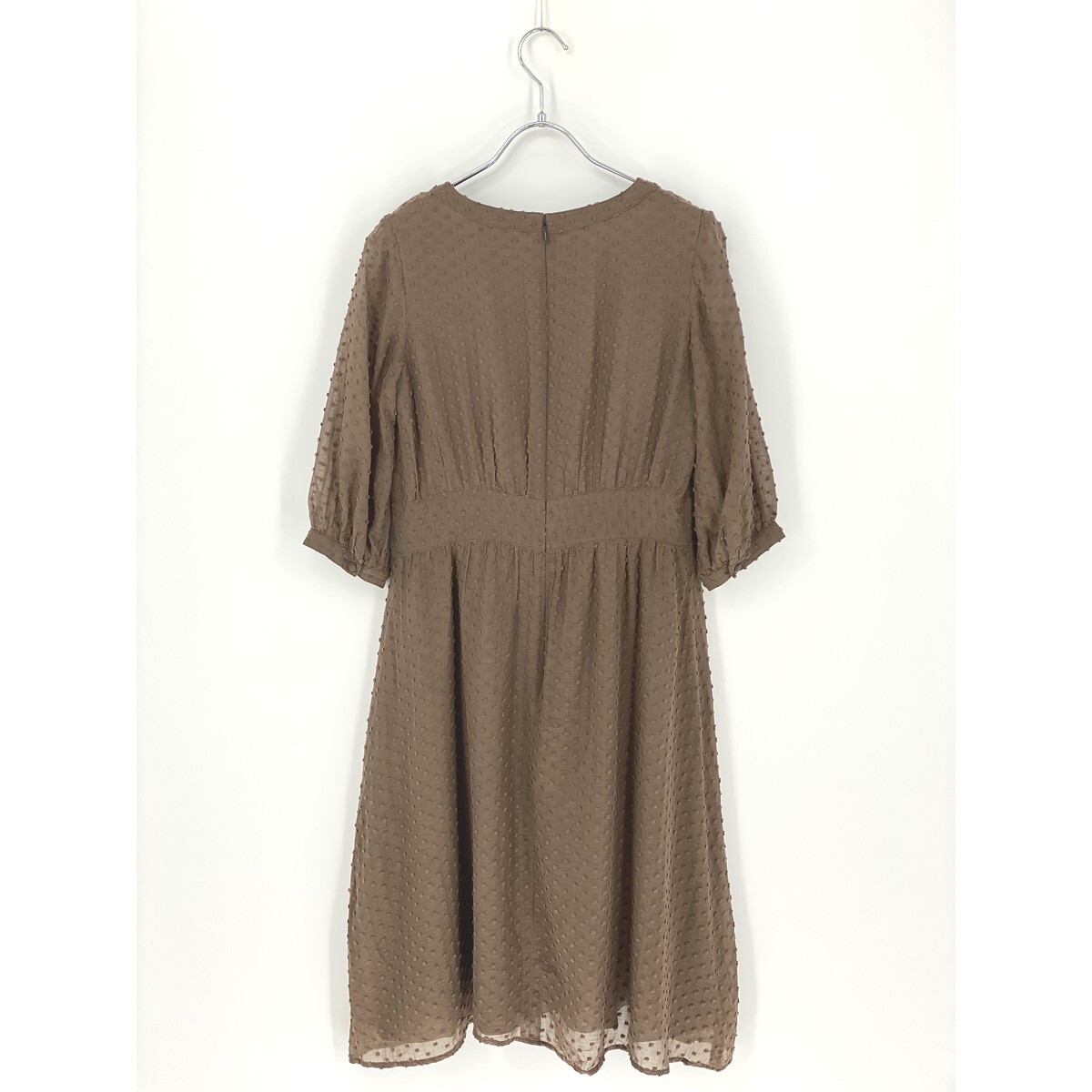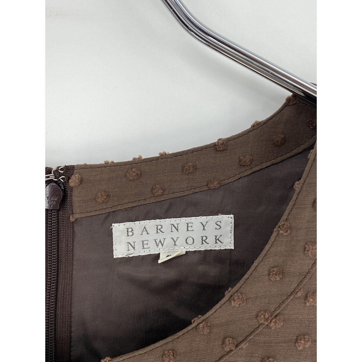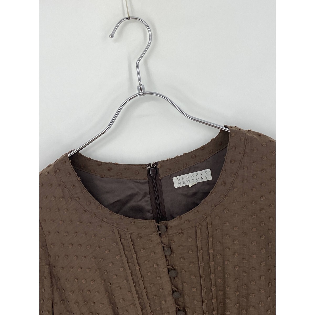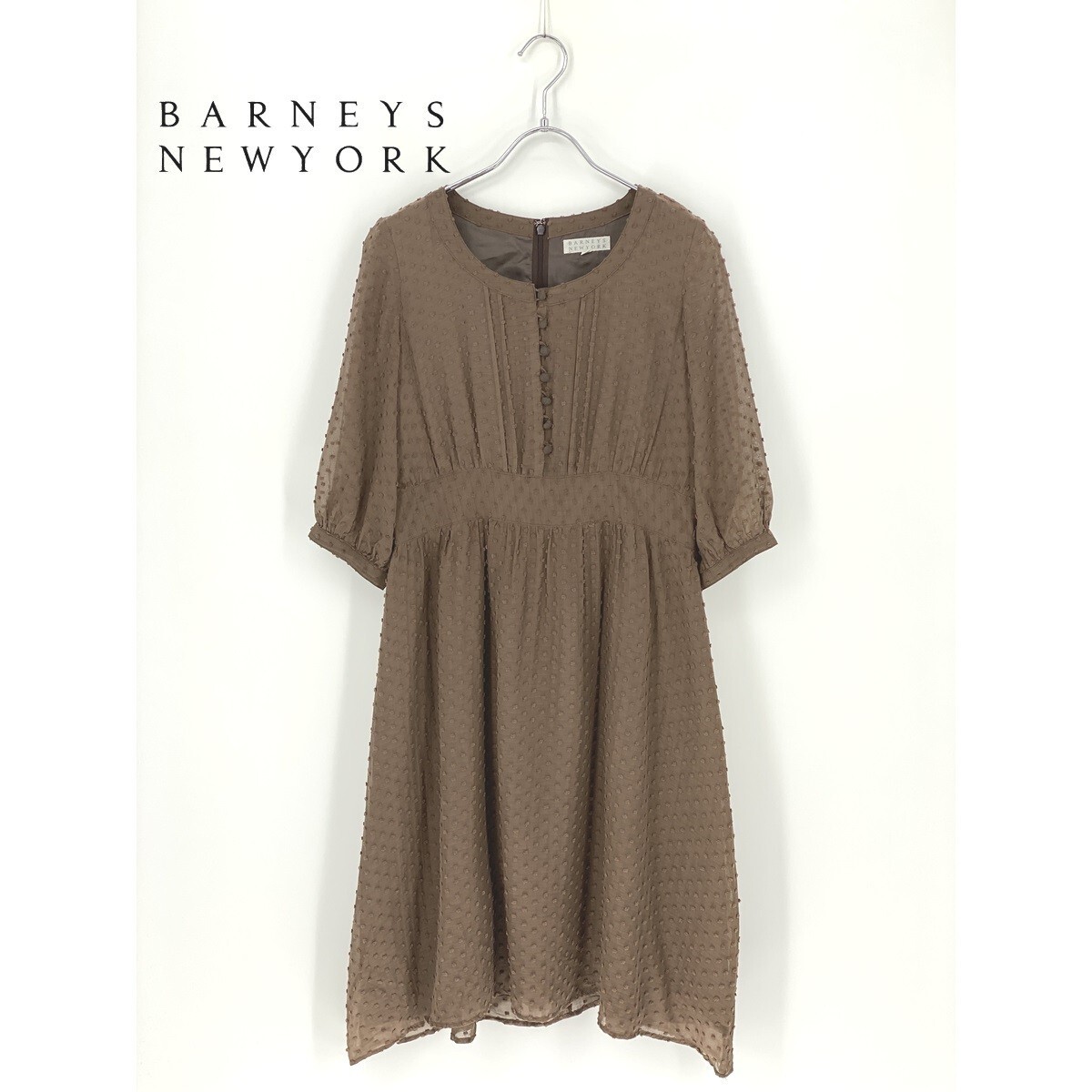B0055/美品 BARNEYS NEWYORK バーニーズニューヨーク コットン シルク 総柄 半袖 膝丈 ミモレ丈 ギャザー ワンピース 38 M 茶 レディース