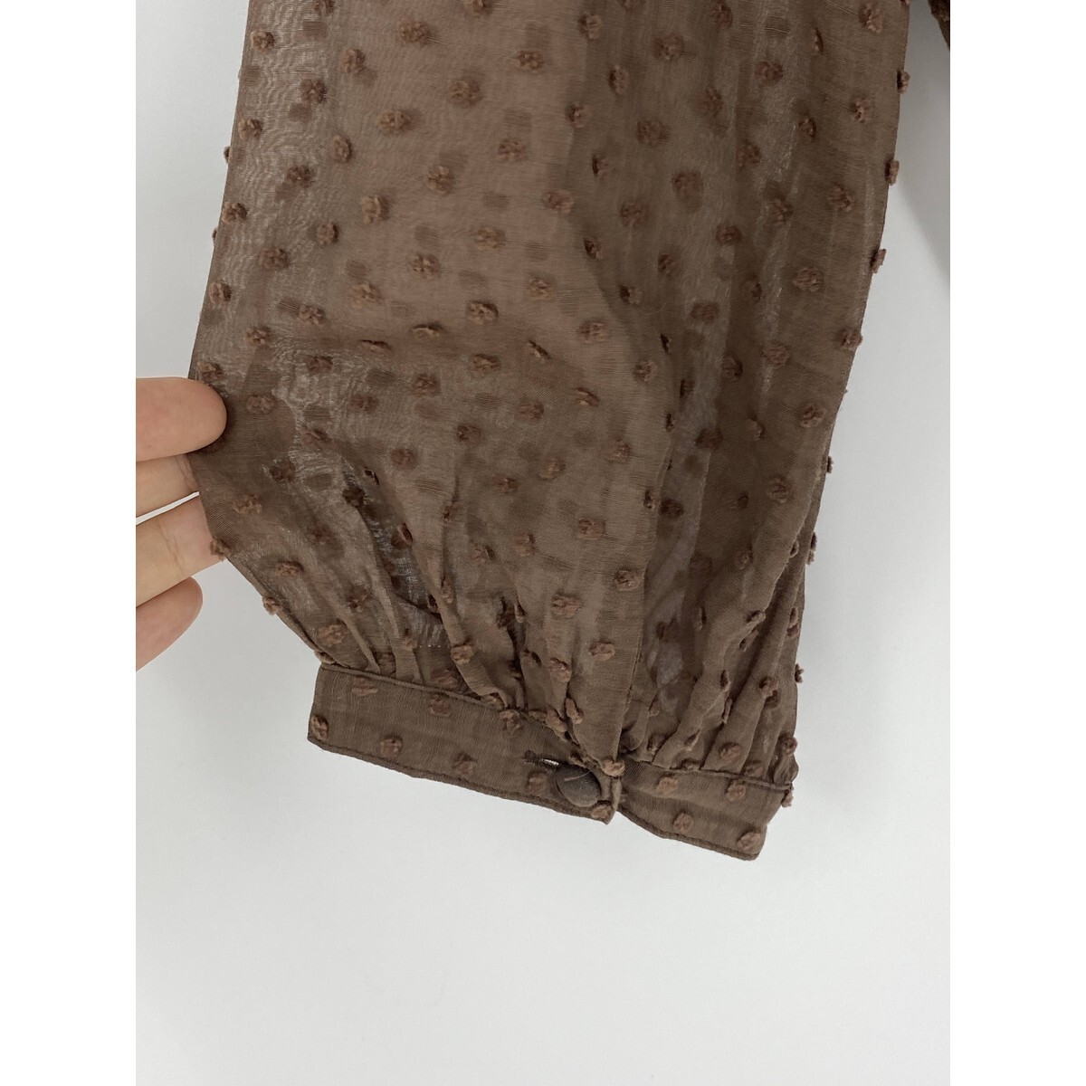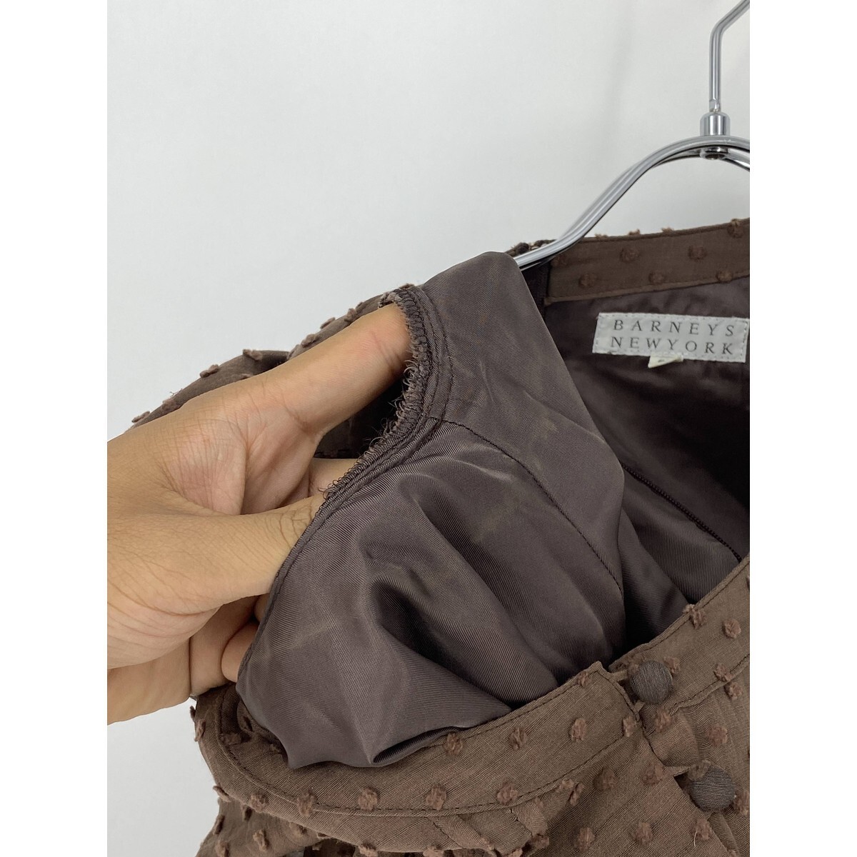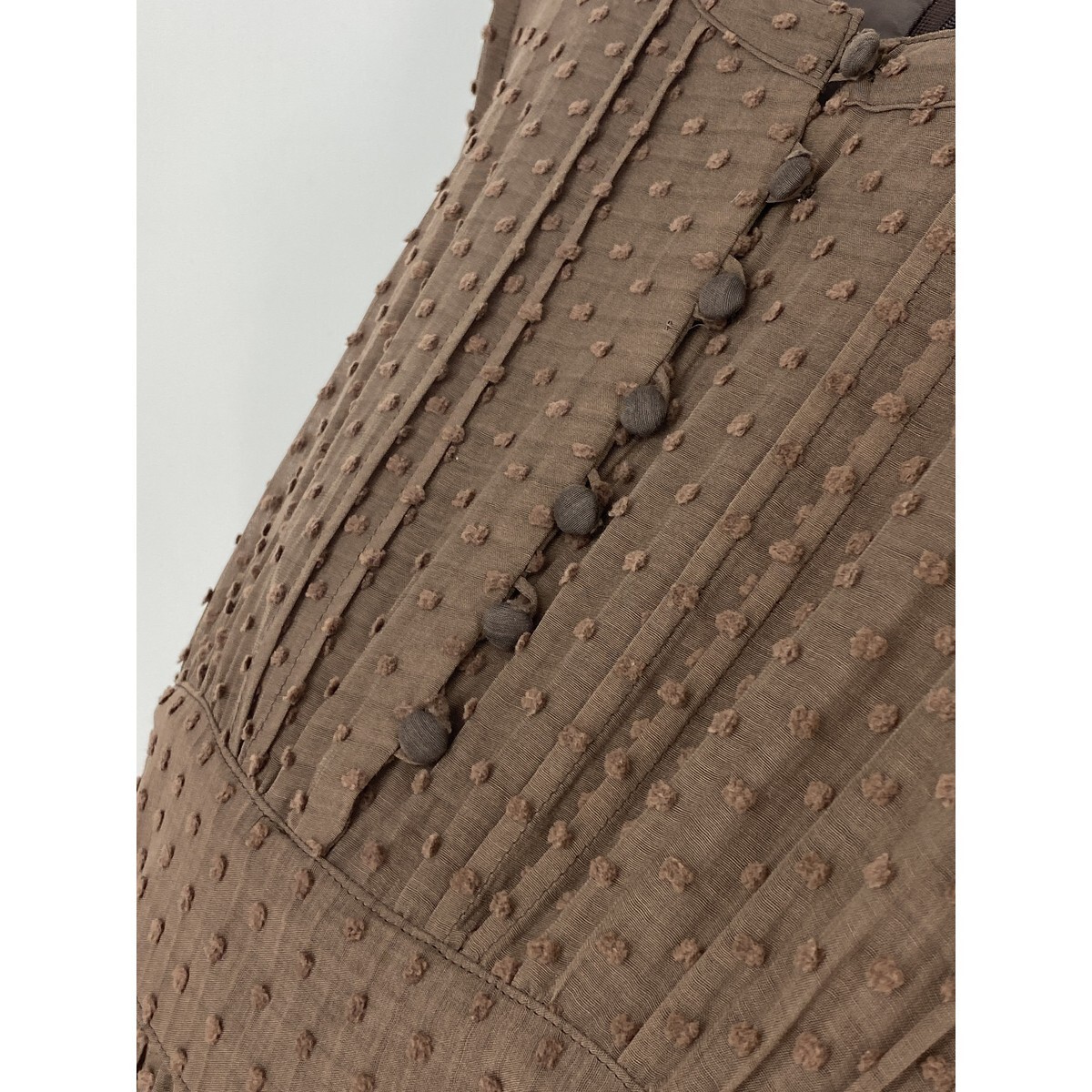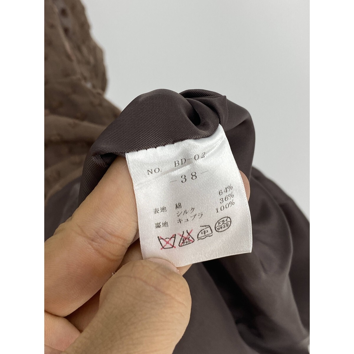 B0055/美品 BARNEYS NEWYORK バーニーズニューヨーク コットン シルク 総柄 半袖 膝丈 ミモレ丈 ギャザー ワンピース 38 M 茶 レディース