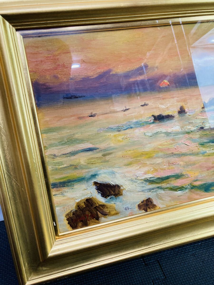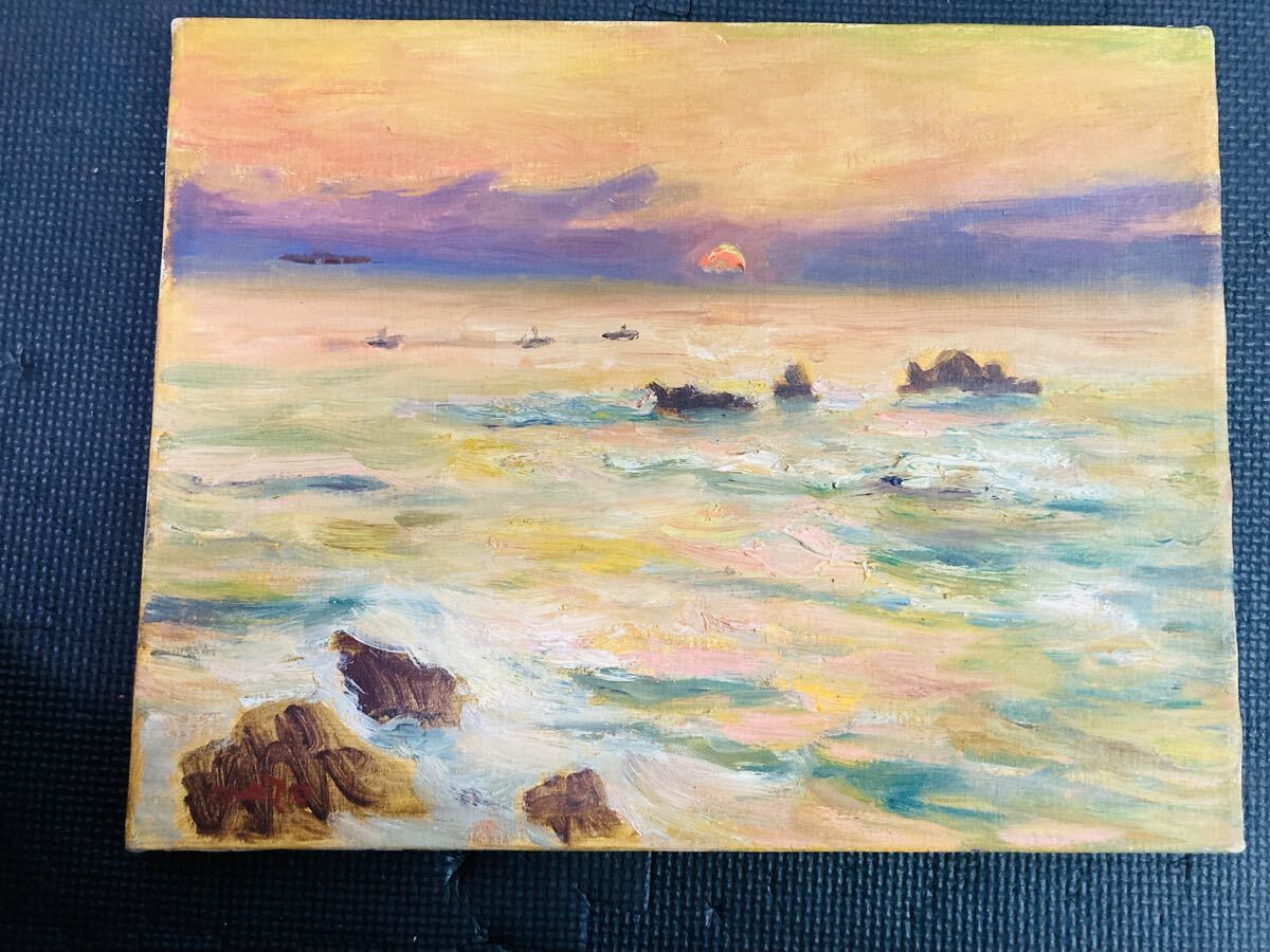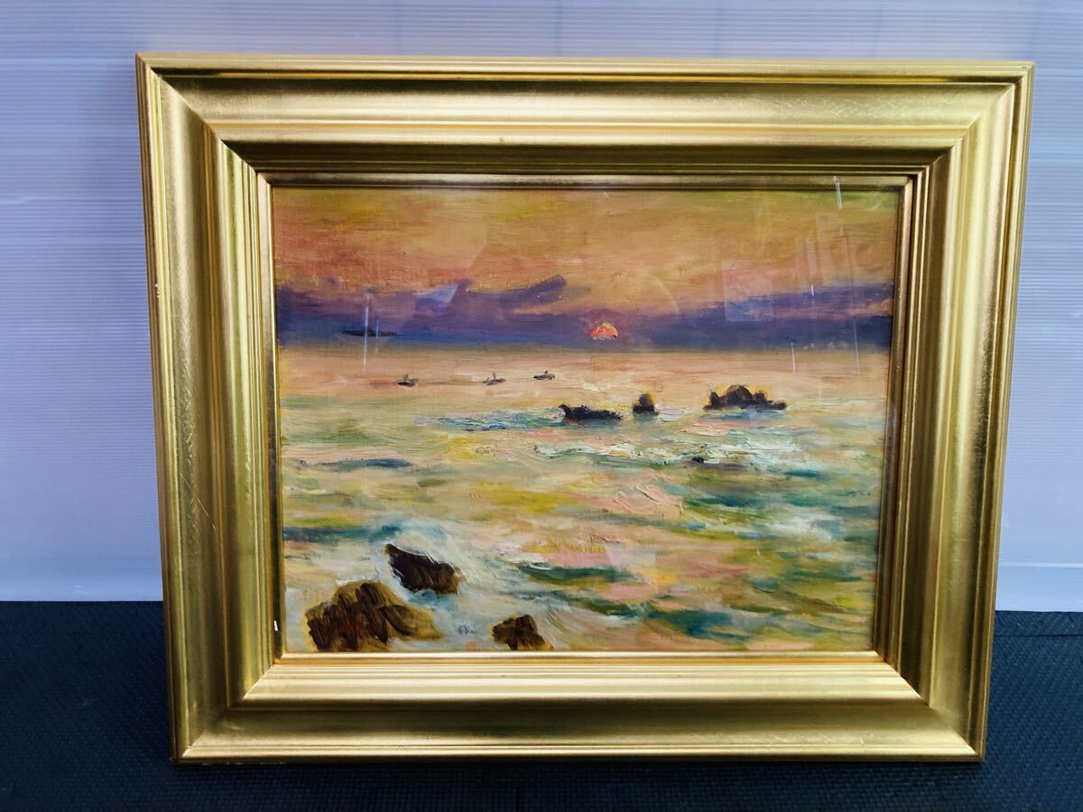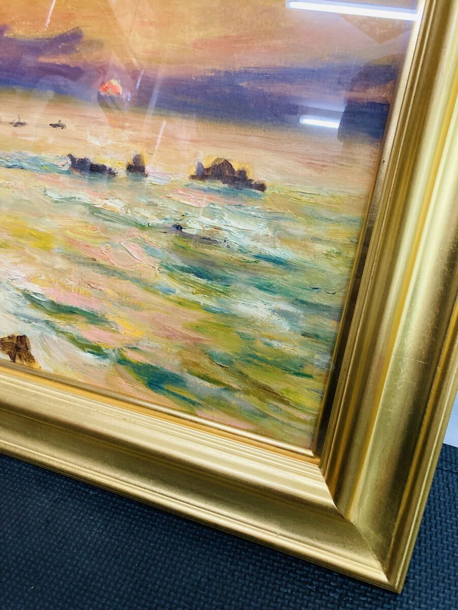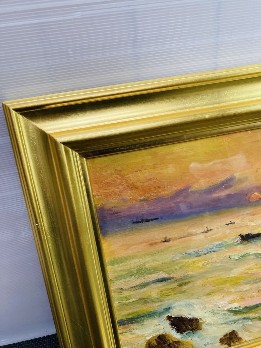 ◆ 油絵 油画 風景画 「日ノ出の海」アート 絵画 インテリア 額縁付きになります。