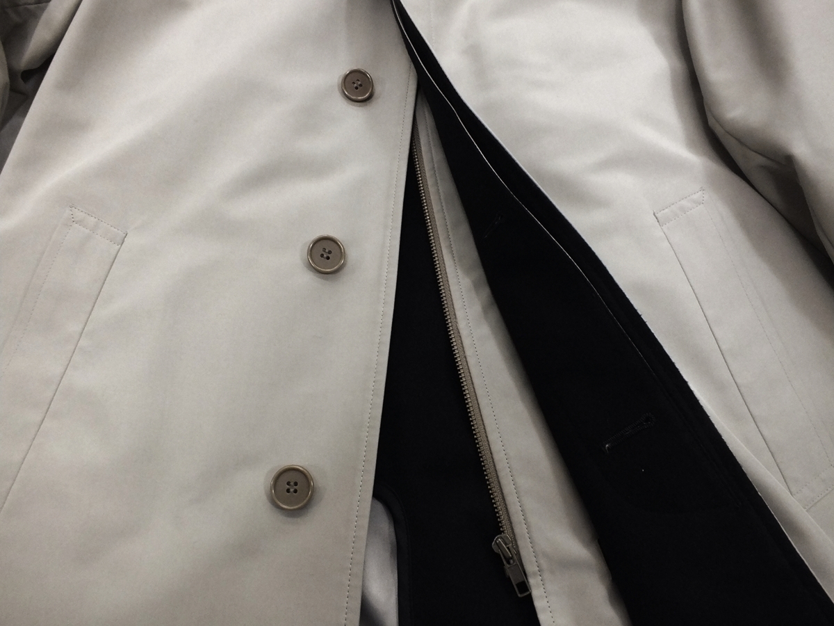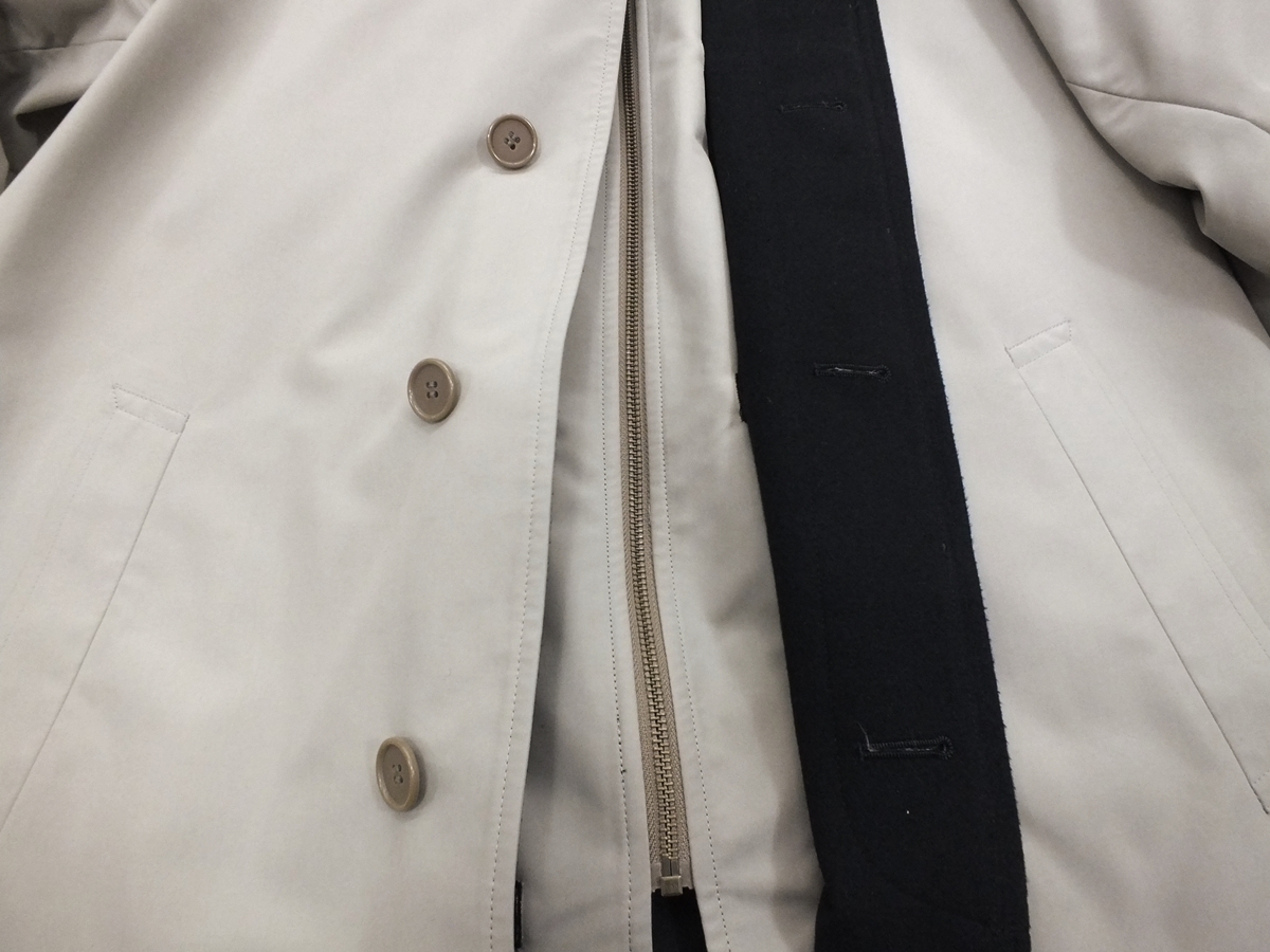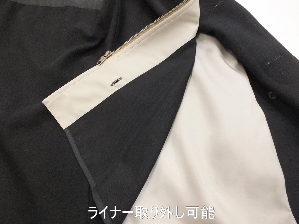 特徴 ○水をはじきやすい ○よごれが付きにくい ○通気性に優れている 〇ライナー取り外し(秋~春まで3シーズン対応) 表素材:ポリエステル100% 裏素材:ポリエステル100% ライナー地:ポリエステル100%(中綿が入ったキルティング仕様) カラー:ブラック 襟デザイン:スタンドカラー ポケット:内1か所、外2か所/センターベンツ/総裏仕様 サイズ:S(適用胸囲:バスト86~94) 普段のスーツサイズ Y4・A4・AB4の方 希望小売価格:36,750円(税込) 縫製:中国 実寸 コート丈94・肩幅48.5・袖丈56・身幅56(脇の下ボタンを掛けて計れば) | ||||